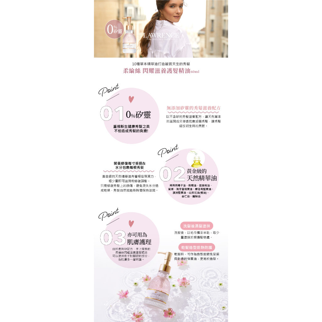 LAWRENCE 柔綸絲-粉漾 閃耀滋養護髮精油60mlLAWRENCE 柔綸絲-粉漾 閃耀滋養護髮精油60mlHair TreatmentOHANA MAHAALO