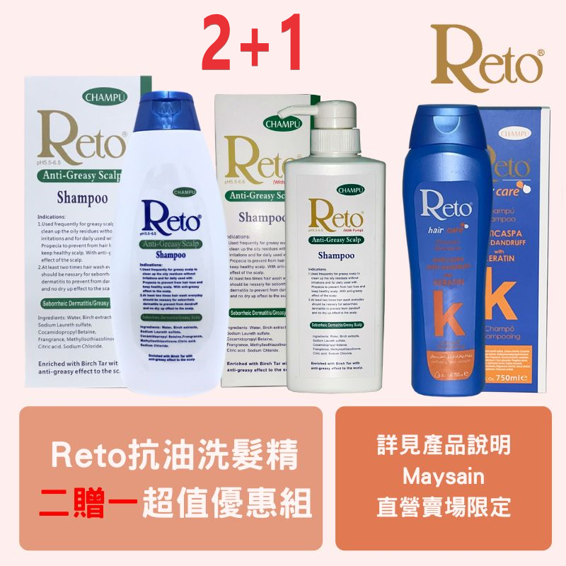 Reto 深層清潔抗油洗髮精盒裝.720ml.+Reto深層抗油性頭皮/髮洗髮精 550ml丫頭包裝贈抗油緩抗屑護髮洗髮Reto 深層清潔抗油洗髮精盒裝.720ml.+Reto深層抗油性頭皮/髮洗髮精 550ml丫頭包裝贈抗油緩抗屑護髮洗髮ShampooReto阿伊媞歐 敏弱肌膚專家