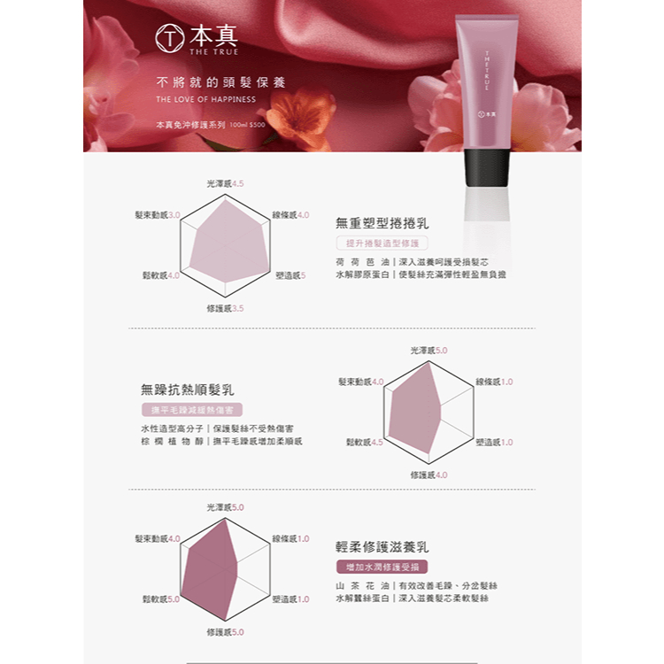 【本真】免沖精華–無躁抗熱順髮乳/輕柔修護滋養乳/無重塑捲捲乳 30ml輕柔修護滋養乳 (深入滋養 修護受損)|無重塑型捲捲乳 (捲髮修護 彈性輕盈)|無躁抗熱順髮乳 (髮絲柔順 減緩熱傷害)Hair TreatmentRENATA蕾娜塔X本真THE TRUE 官方旗艦店