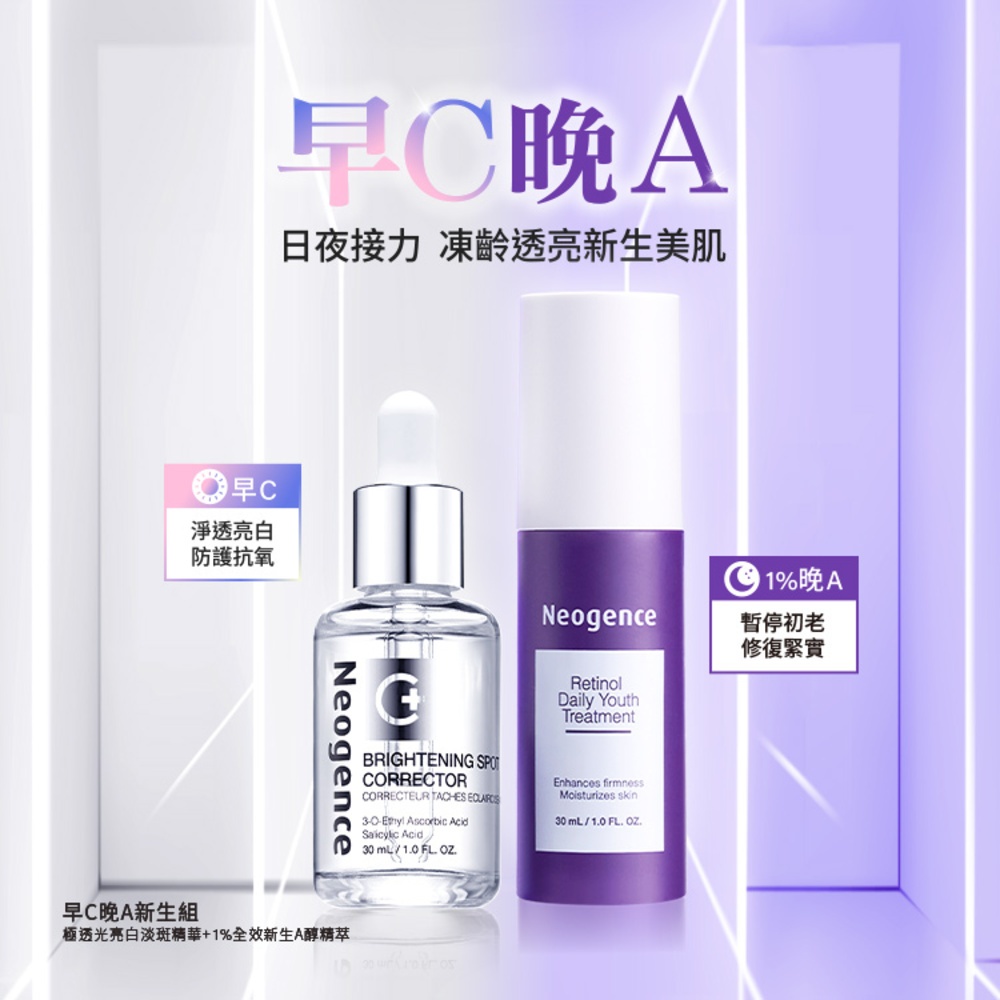 霓淨思 蝦皮獨家★早C晚A緊實發光組(1%新生A醇10ml+新版淡斑精華15ml) 官方旗艦店霓淨思 蝦皮獨家★早C晚A緊實發光組(1%新生A醇10ml+新版淡斑精華15ml) 官方旗艦店Facial Serum & EssenceNeogence霓淨思官方旗艦店