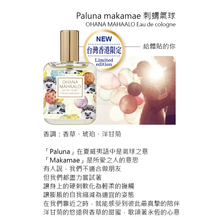 OHANA MAHAALO刺蝟氣球 輕香水30mlOHANA MAHAALO刺蝟氣球 輕香水30mlOHANA MAHAALO