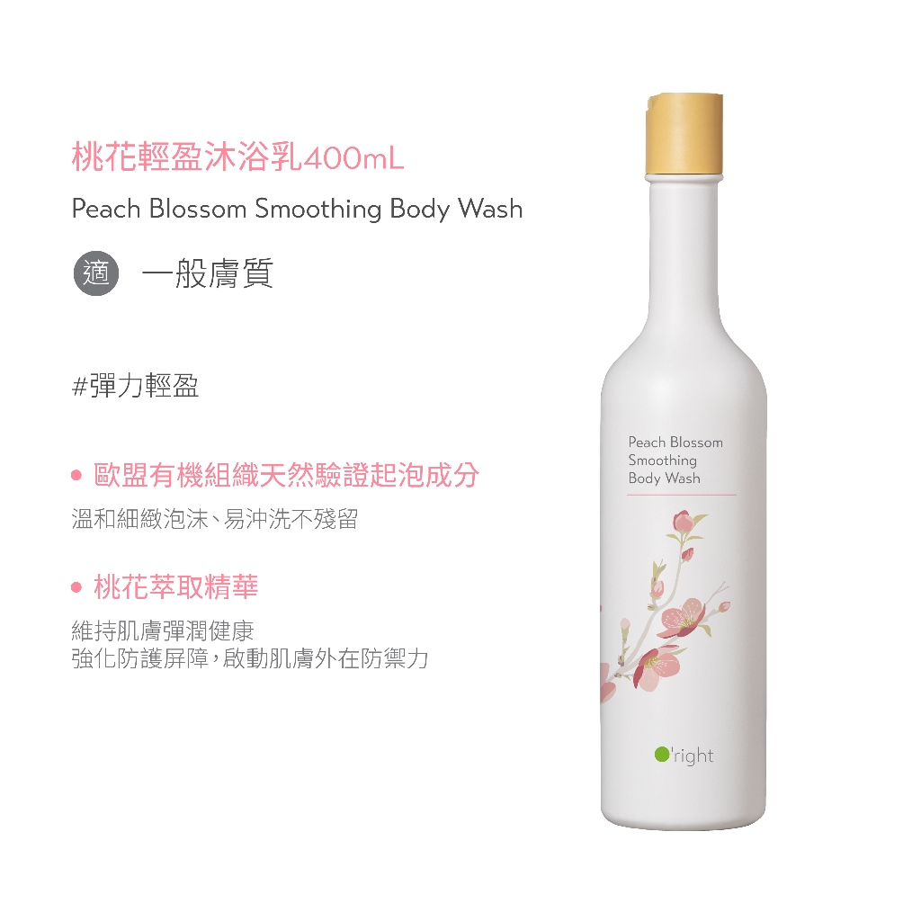 O’right 歐萊德 桃花輕盈沐浴乳400mL 致贈 好禮三選一 推薦一般肌膚 彈力輕盈桃花輕盈沐浴乳400mL,贈 植萃乾洗髮60mL|桃花輕盈沐浴乳400mL,贈 沁涼頭皮噴霧50mL|桃花輕盈沐浴乳400mL,贈 茶樹頭皮噴霧50mLBody Wash & SoapO’right 歐萊德 官方直營旗艦店