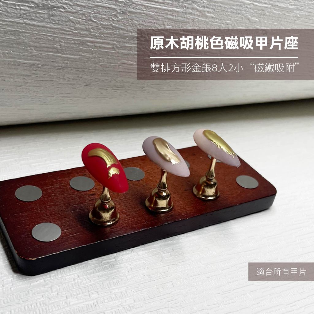 原木胡桃色磁吸甲片座-雙排方形金銀8大2小 穿戴甲 穿戴甲創作臺 美甲甲托 美甲練習座 甲片座 美甲工具原木胡桃色磁吸甲片座-雙排方形金銀8大2Nail CareS PLUS NAIL 官方旗鑑店
