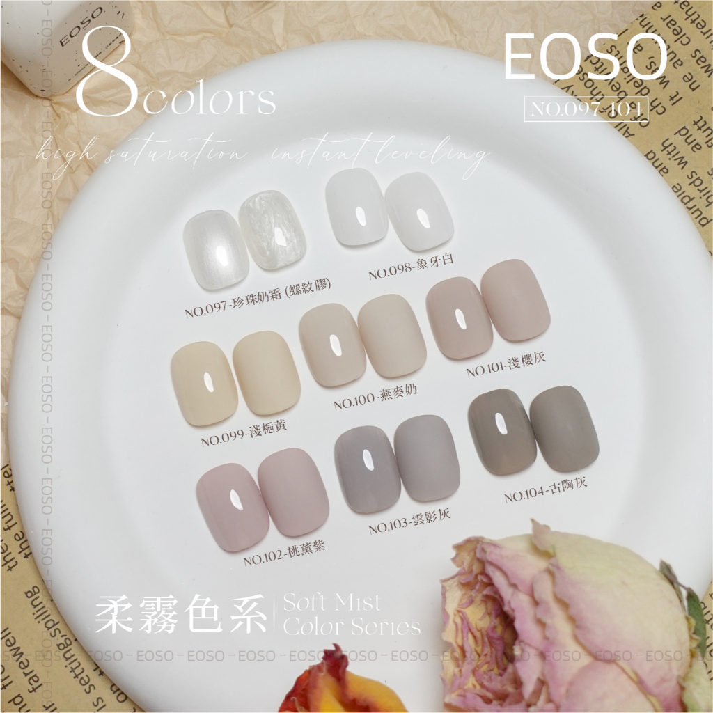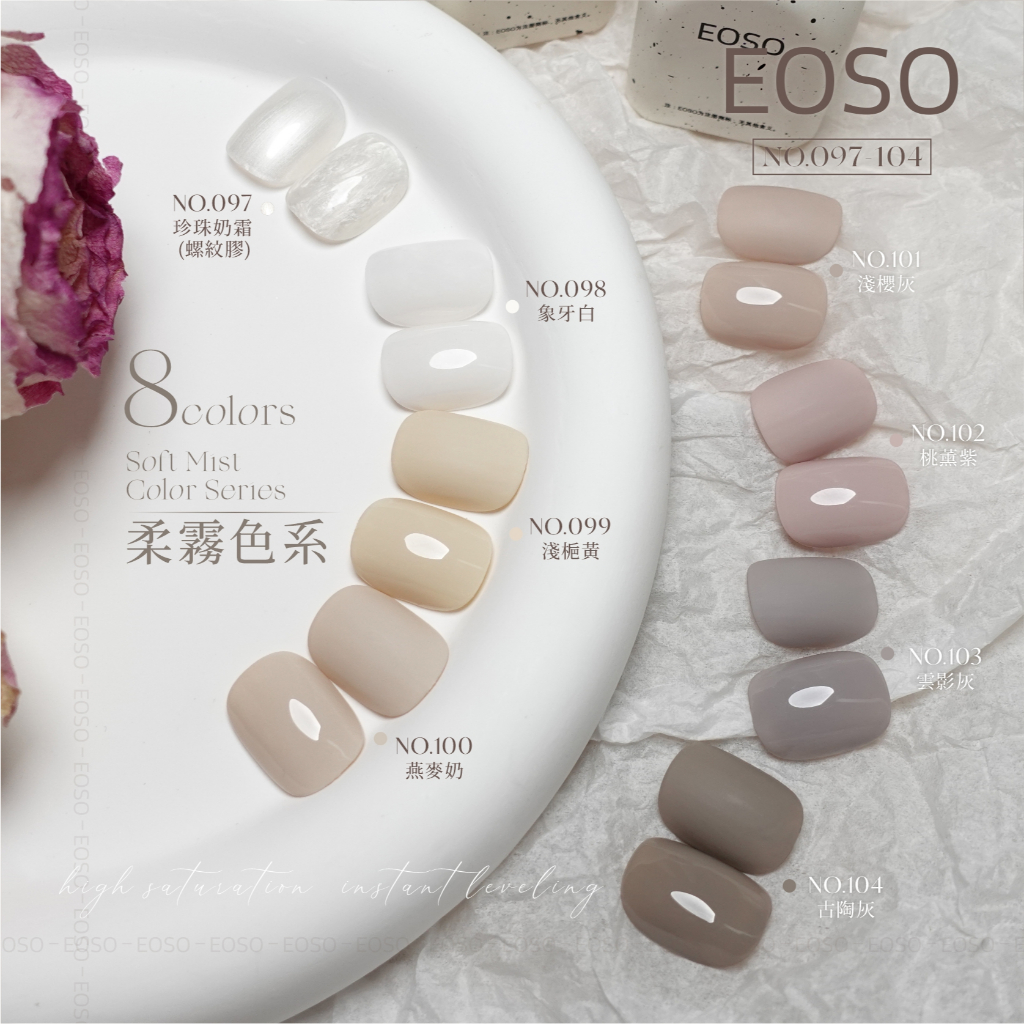 【EOSO】色膠 柔霧色系 珍珠奶霜 月牙白 美甲 美甲色膠 美甲工具EOSO 彩色甲油膠-097-螺紋膠|EOSO 彩色甲油膠-098-象牙白|EOSO 彩色甲油膠-099-淺槴黃|EOSO 彩色甲油膠-100-燕麥奶|EOSO 彩色甲油膠-101-淺櫻灰|EOSO 彩色甲油膠-102-桃薰紫|EOSO 彩色甲油膠-103-雲影灰|EOSO 彩色甲油膠-104-古陶灰Nail CareS PLUS NAIL 官方旗鑑店