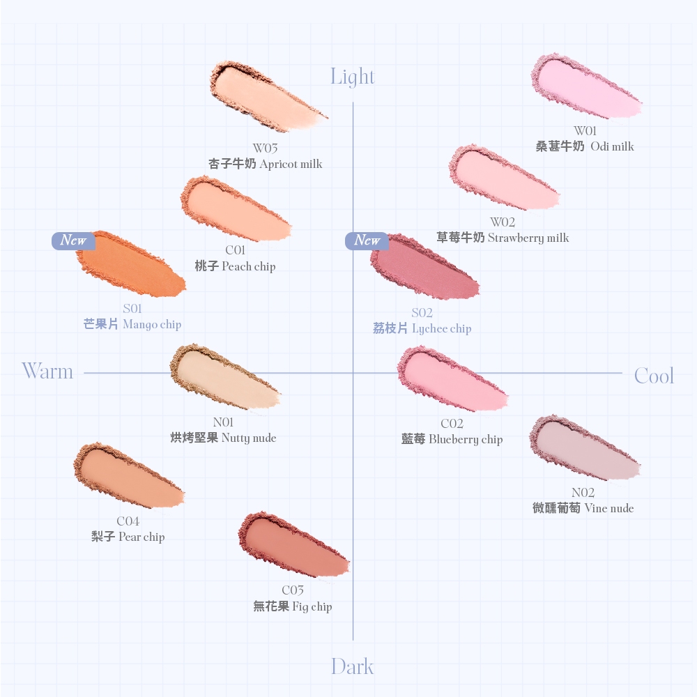 rom&nd 勝過臉頰腮紅 3.4g/4g(停產) 01 橘子|(停產) 02 桃子|(停產) 03 藍莓|(停產) 04 無花果|(停產) 05 櫻桃|(舊包裝/停產) W01 桑葚牛奶|(舊包裝/停產) W03 杏子牛奶|S01 芒果片 Mango Chip|S02 荔枝片 Lychee Chip|C01 桃子 Peach Chip|W02 草莓牛奶 Strawberry|N01 烘烤堅果 Nutty Nude|C02 藍莓 Blueberry Chi|W03 杏子牛奶 Apricot Mil|N02 微醺葡萄 Vine Nude|C04 梨子 Pear Chip|W01 桑葚牛奶 Odi Milk|C03 無花果 Fig ChipFacerom&nd|nuse 官方旗艦店