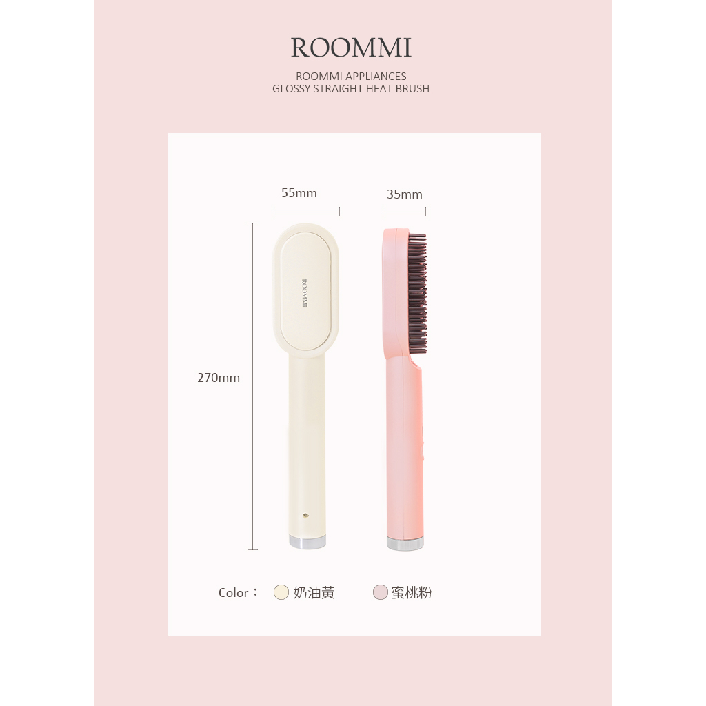 ROOMMI|Glossy電熱直髮梳 2000萬負離子 紅外線護髮 五段調溫 韓系美型蜜桃粉|奶油黃|櫻花粉Hair Toolsroommi tw