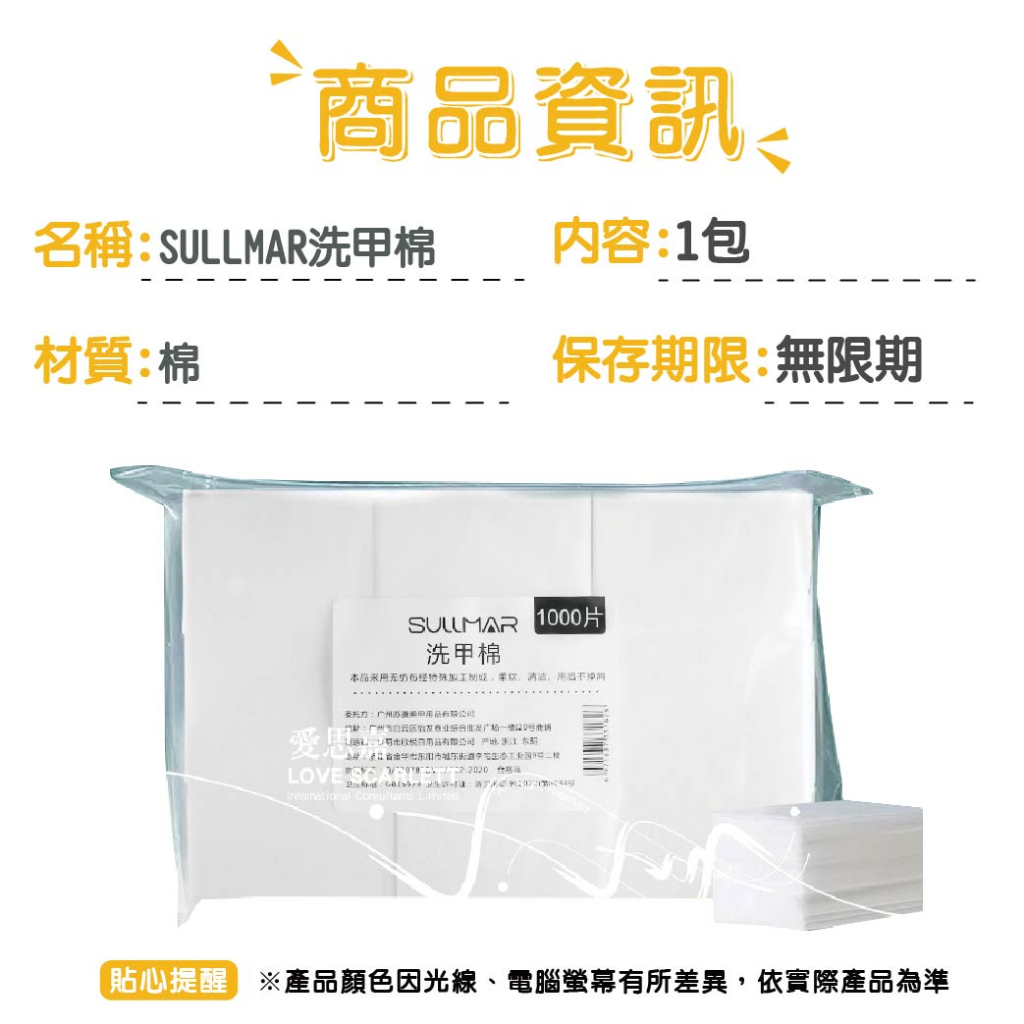 SULLMAR洗甲棉 1000片袋装 除膠 洗筆 不掉毛 卸甲棉片 化妝卸妝棉SULLMAR洗甲棉 1000片袋装01Nail CareS PLUS NAIL 官方旗鑑店