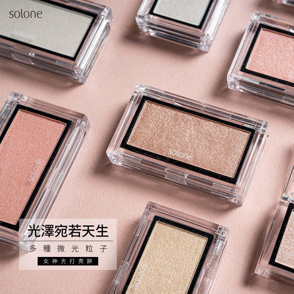 Solone 女神光打亮餅(頰彩/自組彩妝)+大藝術家玩色刷具輕柔圓扇刷F10【官方旗艦館】