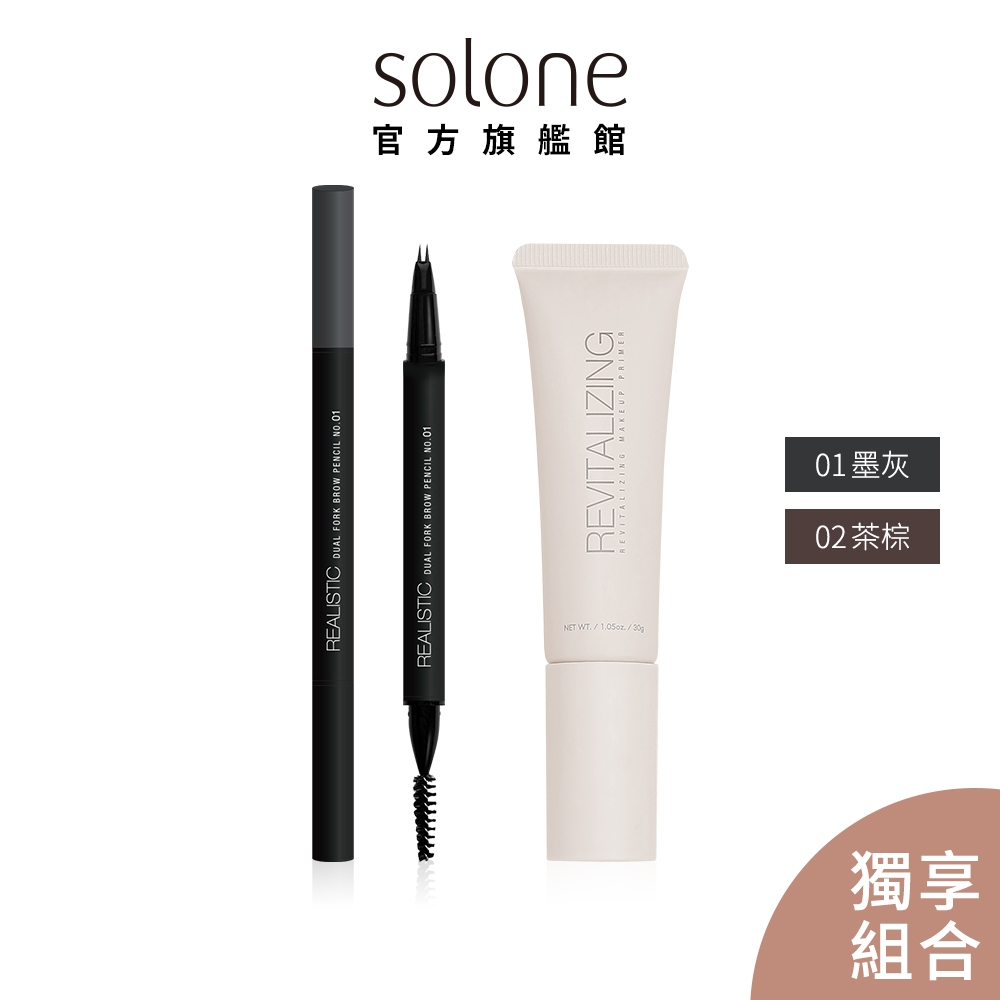 Solone 絕對流線雙叉液態眉筆+煥采亮顏美肌乳 (獨享組合)【官方旗艦館】01墨灰|02茶棕EyesSolone 官方旗艦館