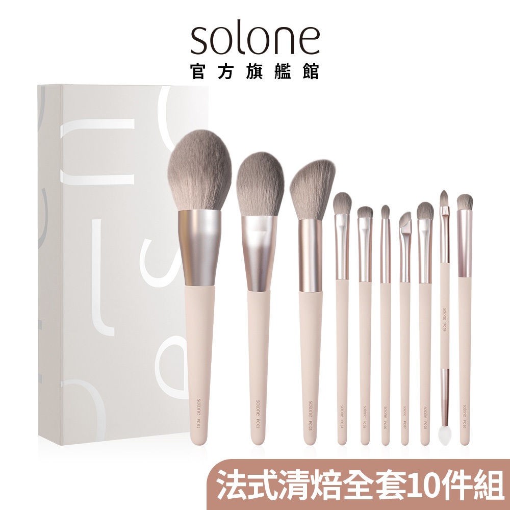 Solone 法式清焙刷具 全套10件組 (品牌專屬盒裝)【官方旗艦館】全套10件組1組|10件組1入加贈水洗清潔液100ml1入Makeup AccessoriesSolone 官方旗艦館
