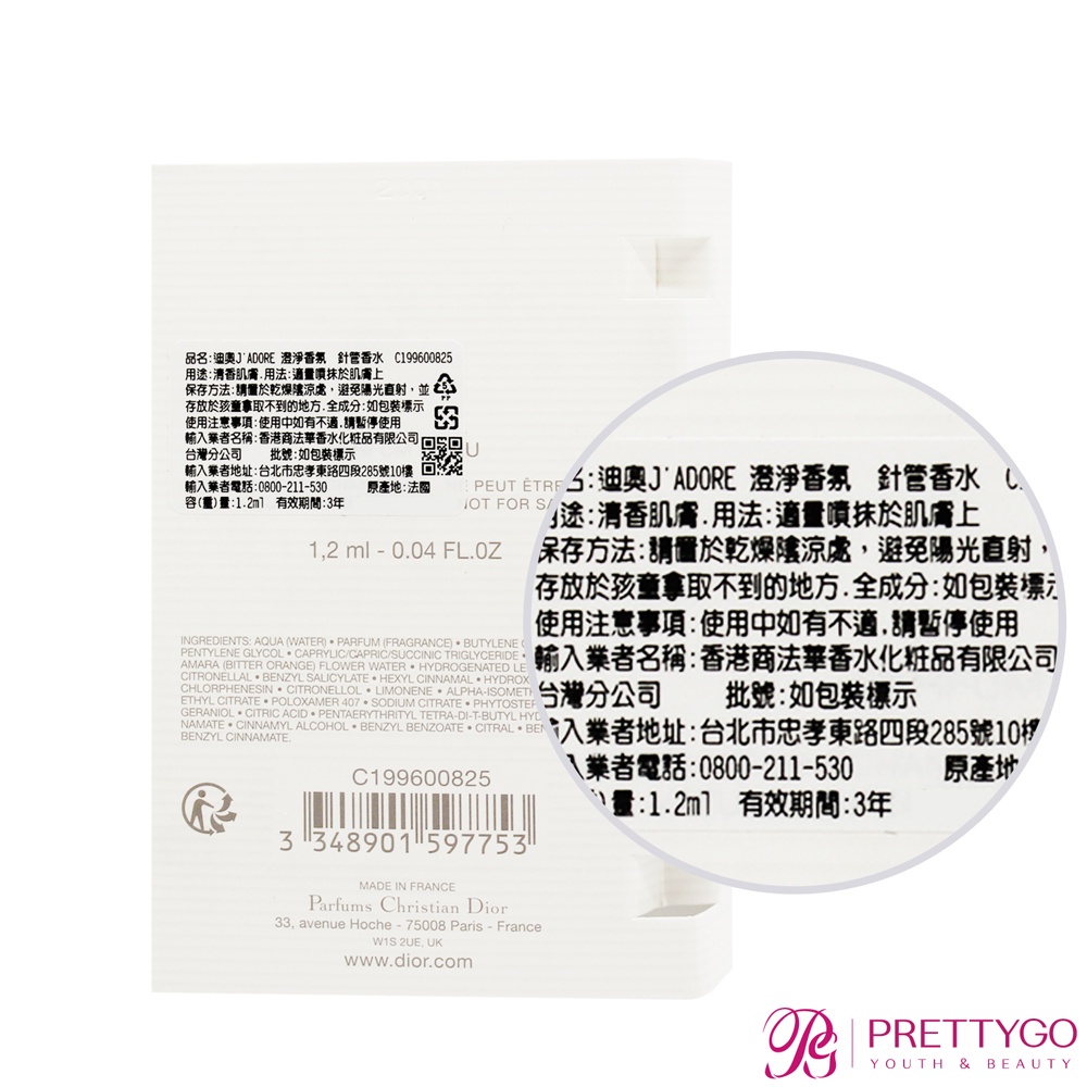 Dior 迪奧 J’Adore 澄淨香氛香水(1.2ml/5ml)-隨身針管試香【美麗購】澄淨香氛香水(1.2ml)|澄淨香氛(5ml)(精巧版)PrettyGo 美麗購
