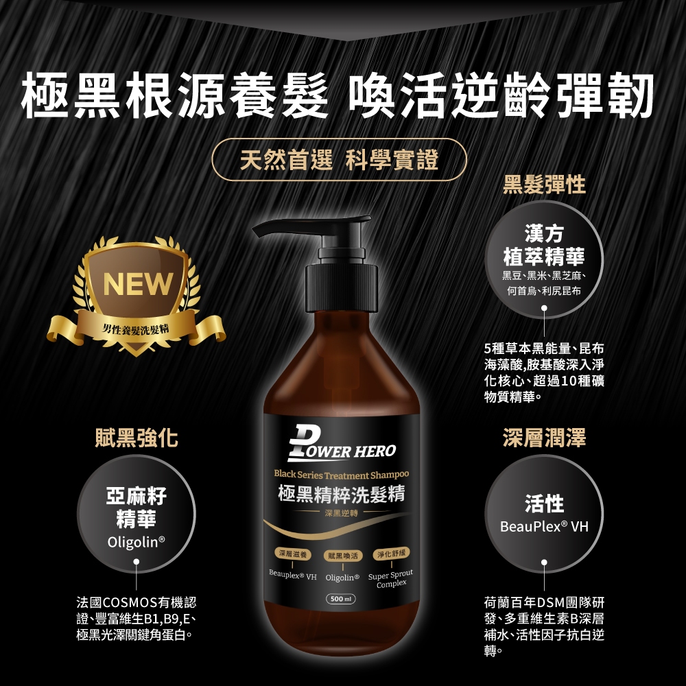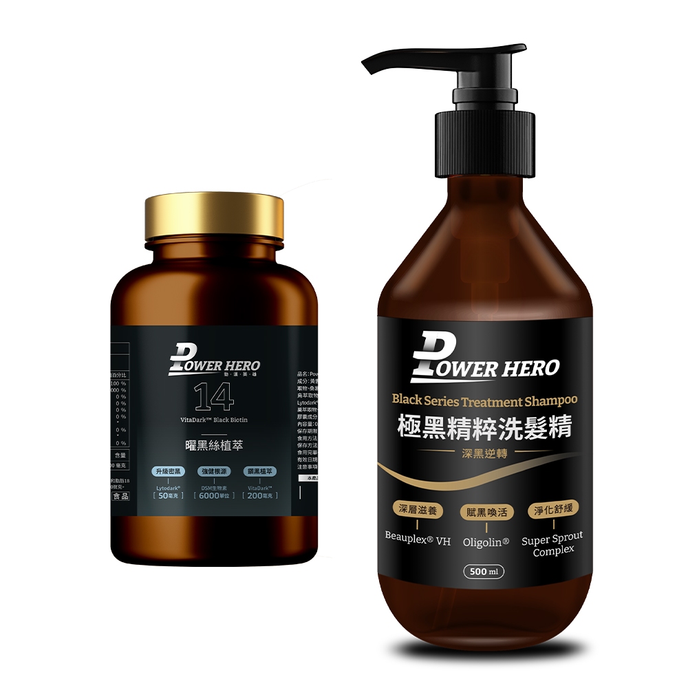 【PowerHero】極黑精粹洗髮精(500ml/入)+曜黑絲植萃(60顆/盒)【PowerHero】極黑精粹洗髮精(500ml/入)+曜黑絲植萃(60顆/盒)ShampooPowerHero 官方旗艦館