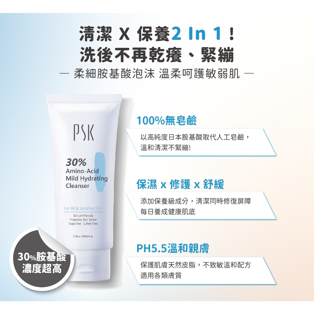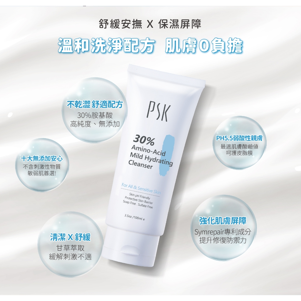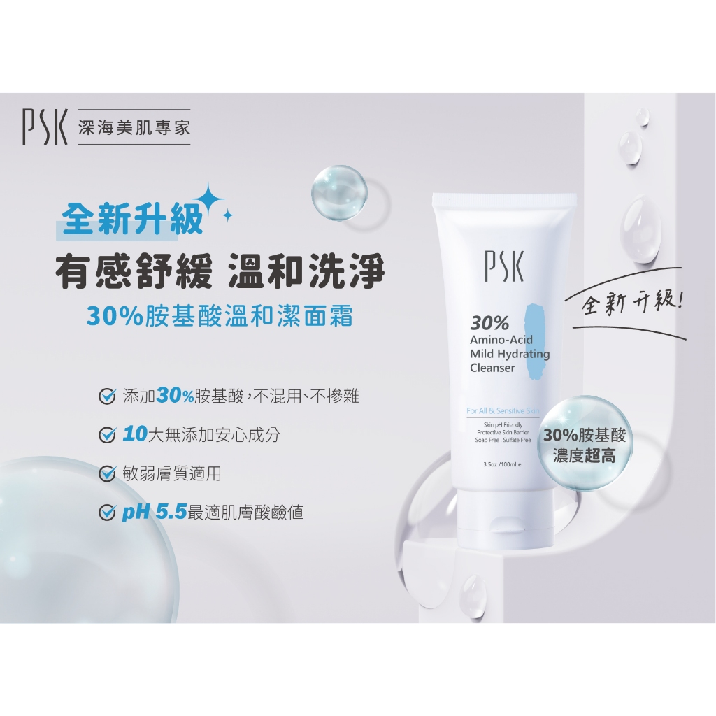 PSK 溫和淨化洗卸明星組-30%胺基酸溫和潔面霜100ml+Q10嫩白去角質凝膠100ml+深層潔淨卸妝膏80g正貨-贈面膜一片PSK深海美肌專家官方直營