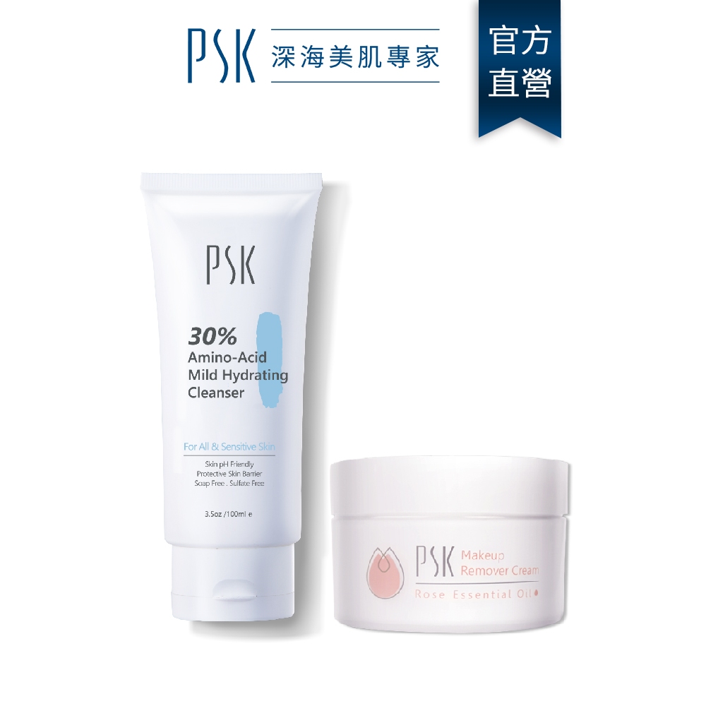 PSK深海美肌專家 溫和洗卸組-深層潔淨卸妝膏80g+30%胺基酸溫和潔面霜100ml|瞬卸 卸粧 洗卸 洗臉 洗面正貨PSK深海美肌專家官方直營