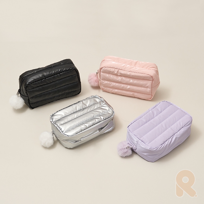 Rfunshop|條紋雲朵長形化妝包 化妝包 雲朵包 質感 毛球 時尚 RB021粉|紫|銀|黑Makeup AccessoriesRFUNSHOP旗艦店