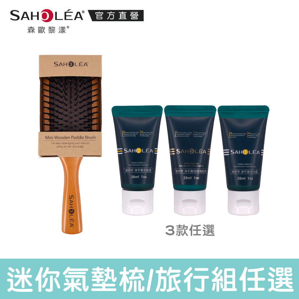 【SAHOLEA森歐黎漾】迷你氣墊梳+旅行組28mlx3(三款任選)無,淨平衡洗沐護|無,水漾薔薇洗沐護|無,三冠王洗髮組Hair ToolsSAHOLEA森歐黎漾 官方旗艦館