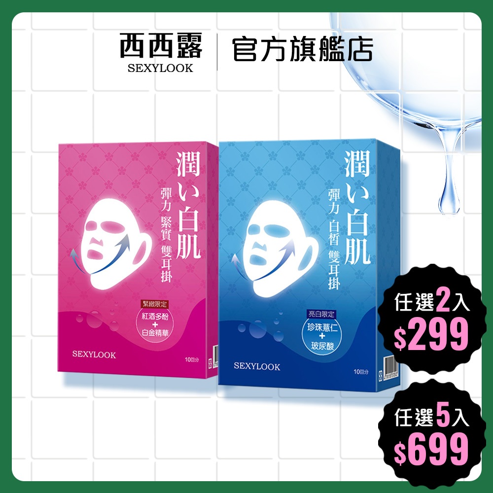 【SEXYLOOK 西西露】彈力雙耳掛系列面膜(10片/盒)_白皙/緊實_兩款任選彈力白皙(藍)|彈力緊實(粉)Face Mask & PacksSEXYLOOK 西西露官方旗艦店