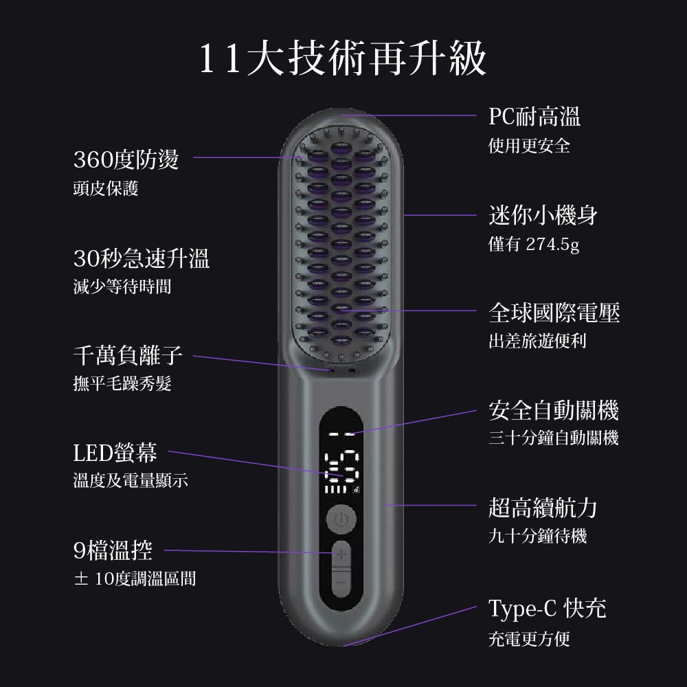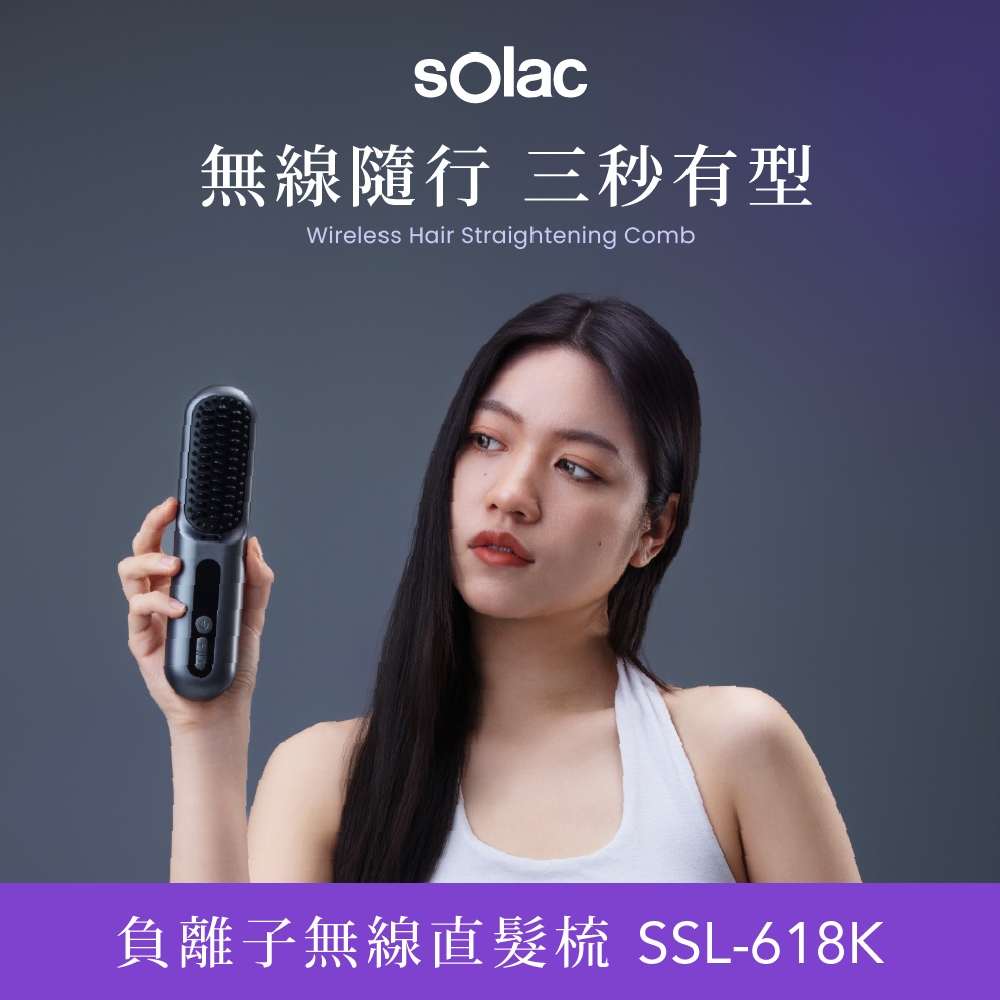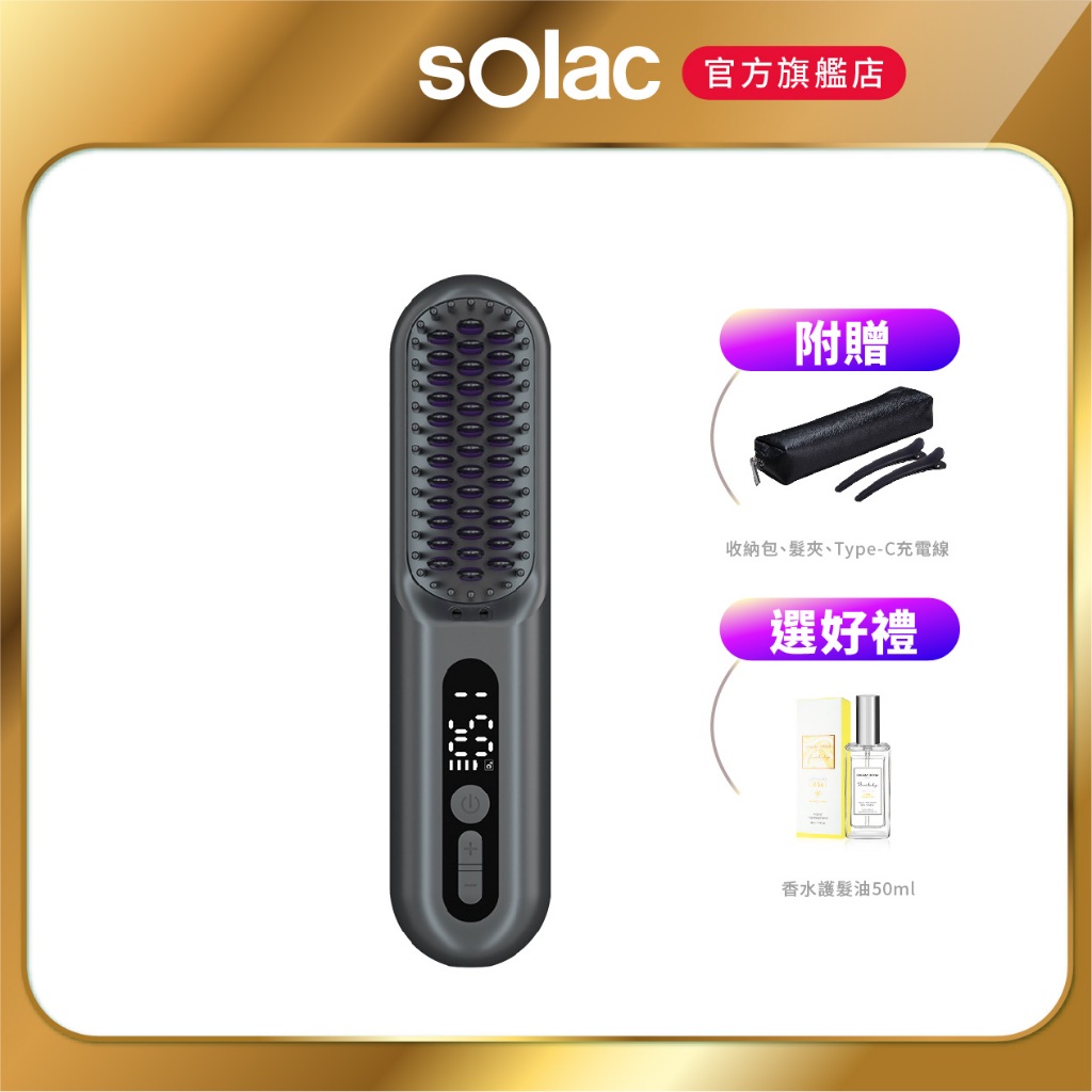 【 sOlac 】SSL-618 負離子無線直髮梳 超強續航力 直髮 負離子髮梳 防燙齒梳 造型梳 618 直髮梳鐵砂灰|單機|鐵砂灰|加購凱夢LYKY香水護髮油Hair ToolssOlac 官方旗艦館