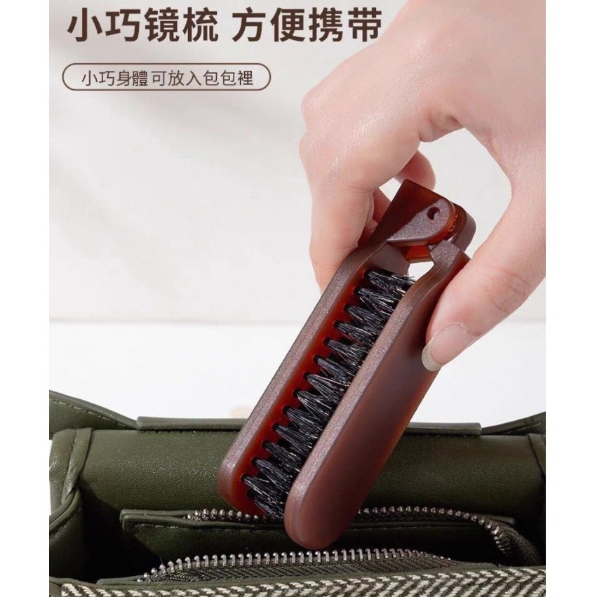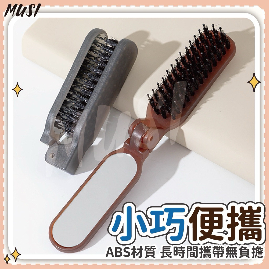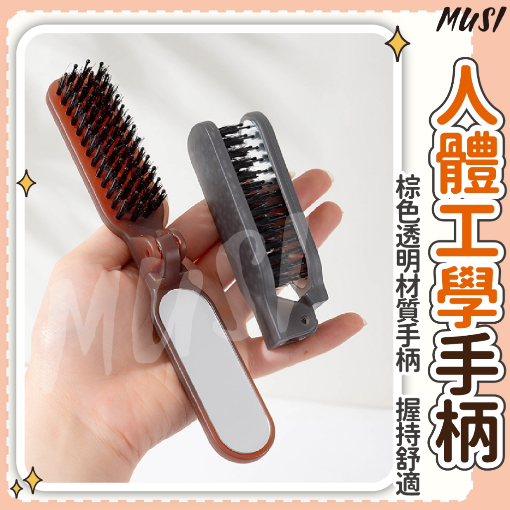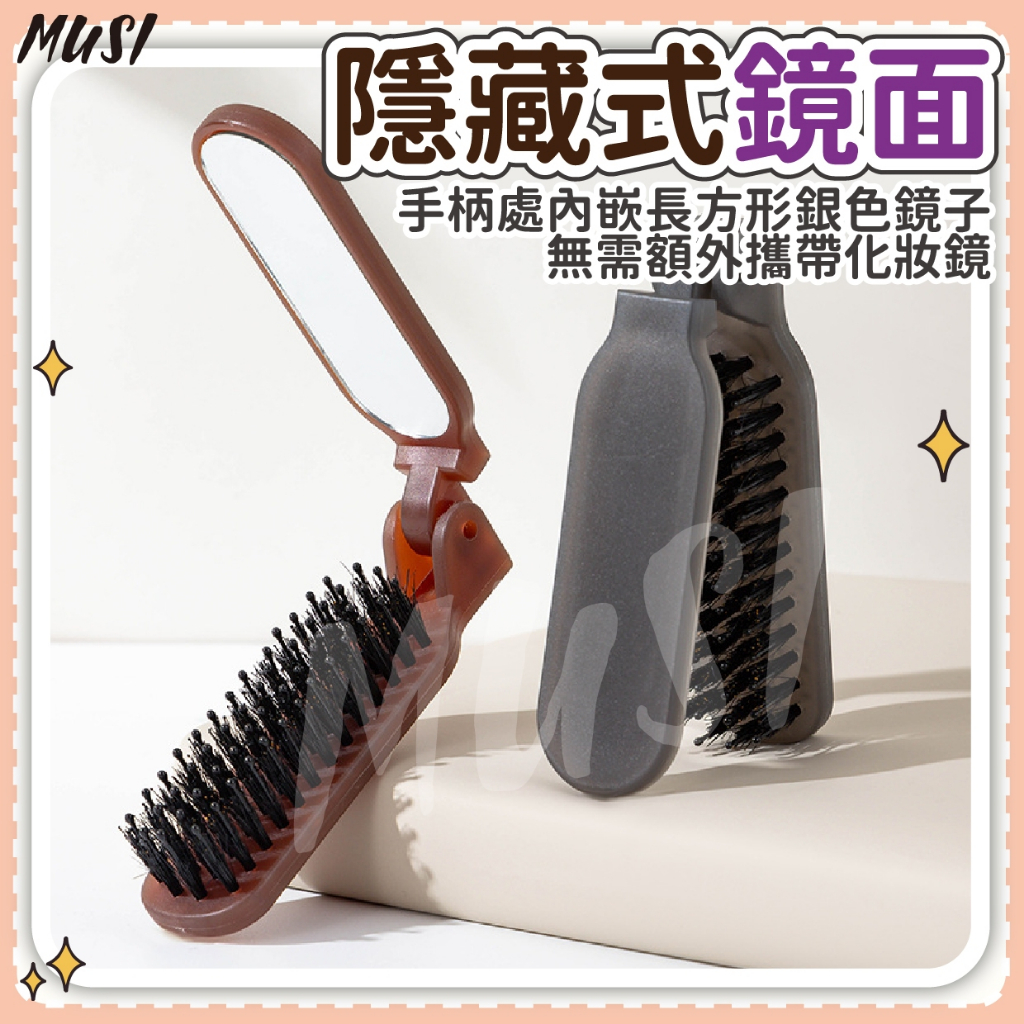 [可折疊+鏡子]鬃毛梳 折疊梳 豬鬃毛梳 帶鏡子方便補妝 摺疊梳 折疊鬃毛梳折疊鬃毛梳-咖色 現貨隔天發Hair ToolsMUSI 口罩&包包帽子 專賣