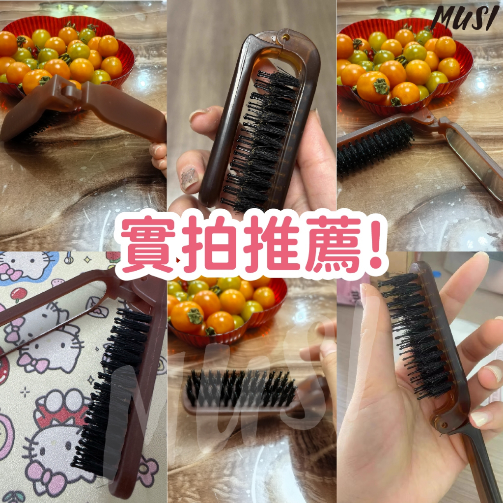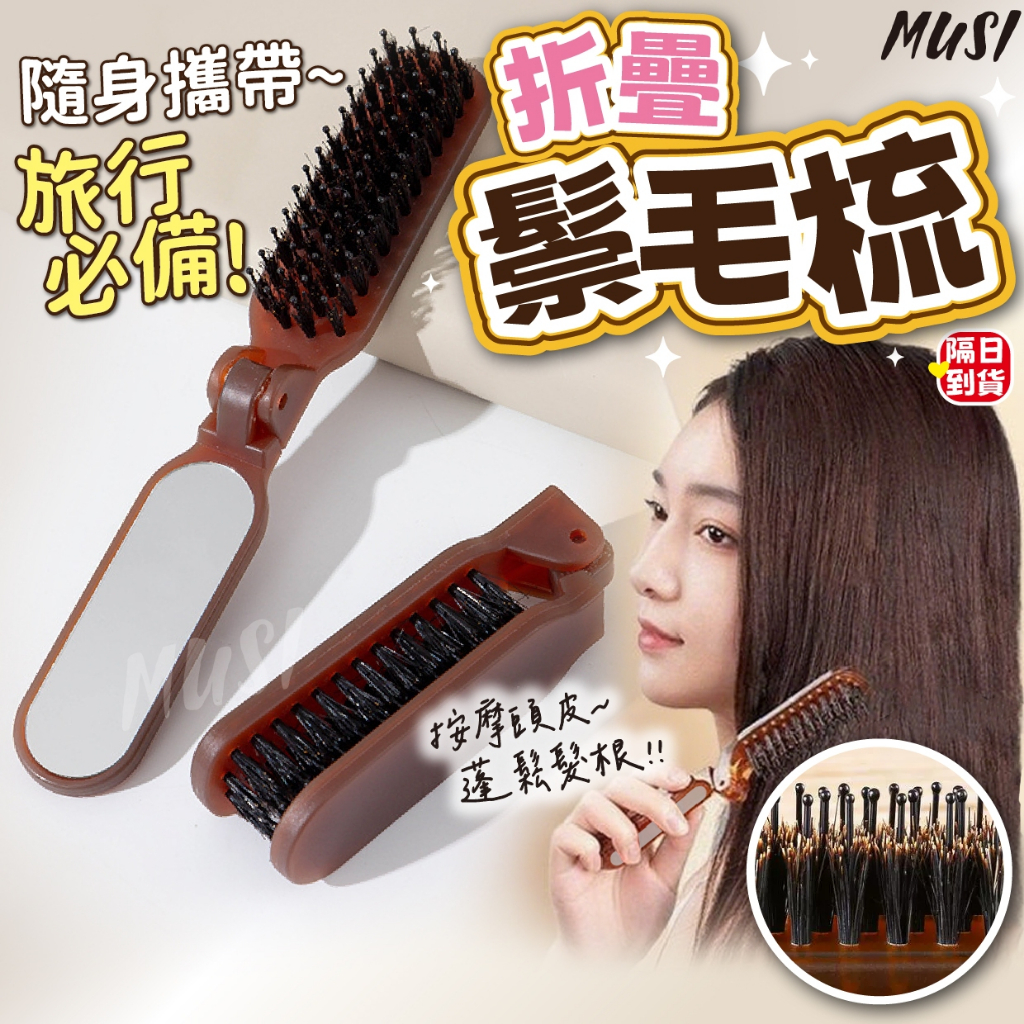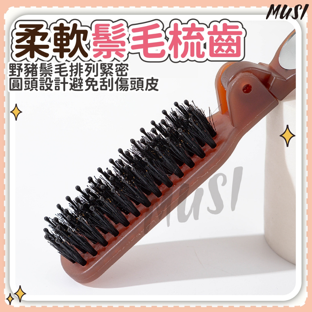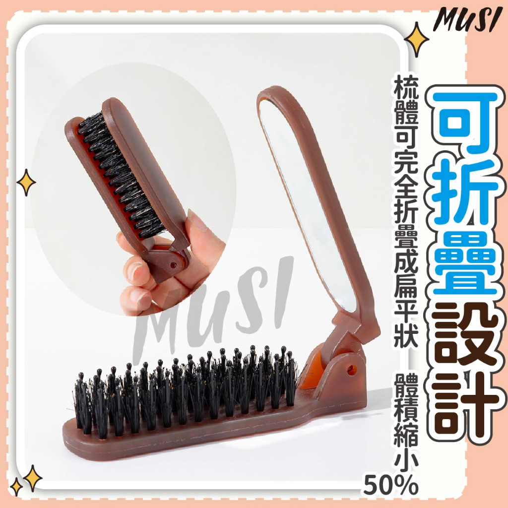 [可折疊+鏡子]鬃毛梳 折疊梳 豬鬃毛梳 帶鏡子方便補妝 摺疊梳 折疊鬃毛梳折疊鬃毛梳-咖色 現貨隔天發Hair ToolsMUSI 口罩&包包帽子 專賣