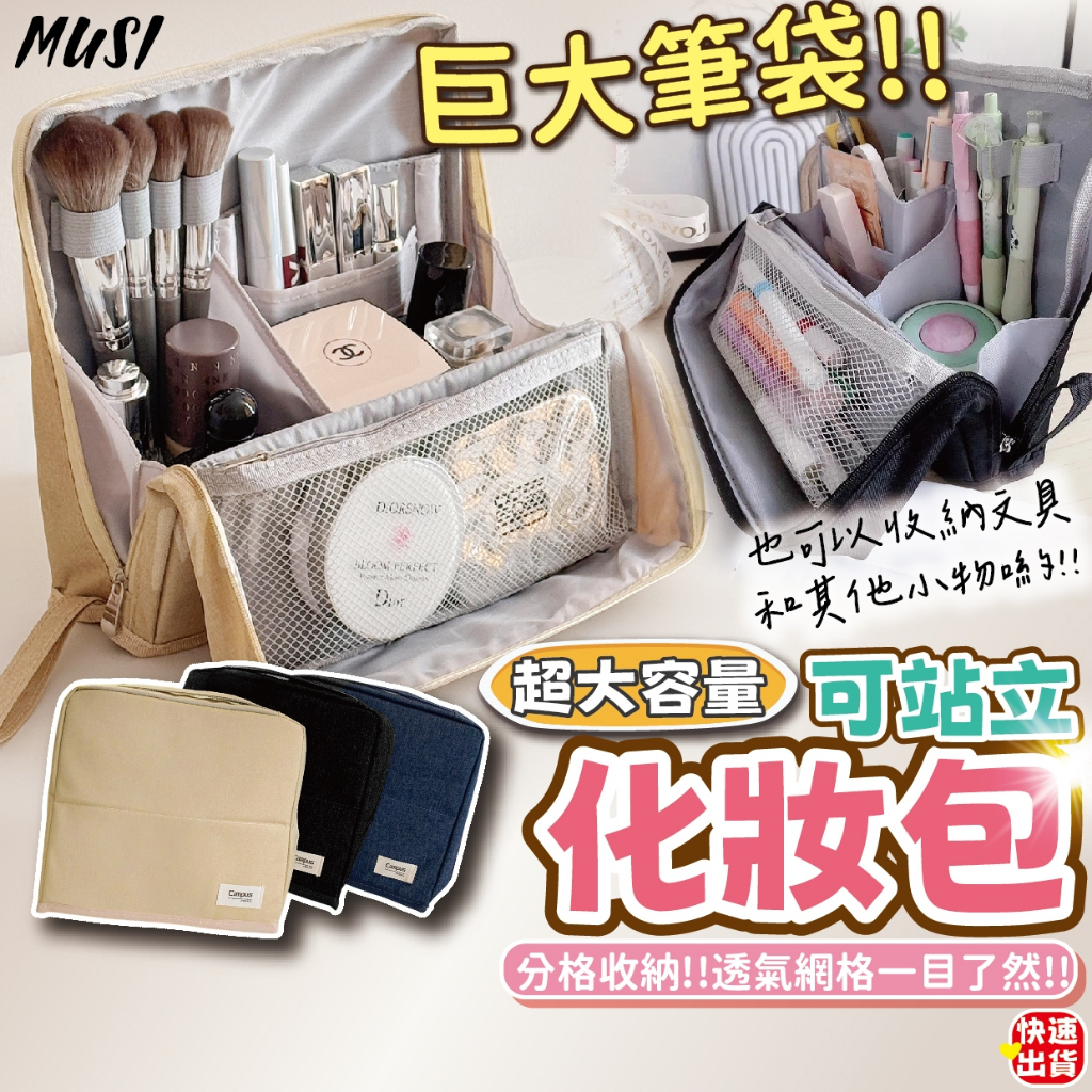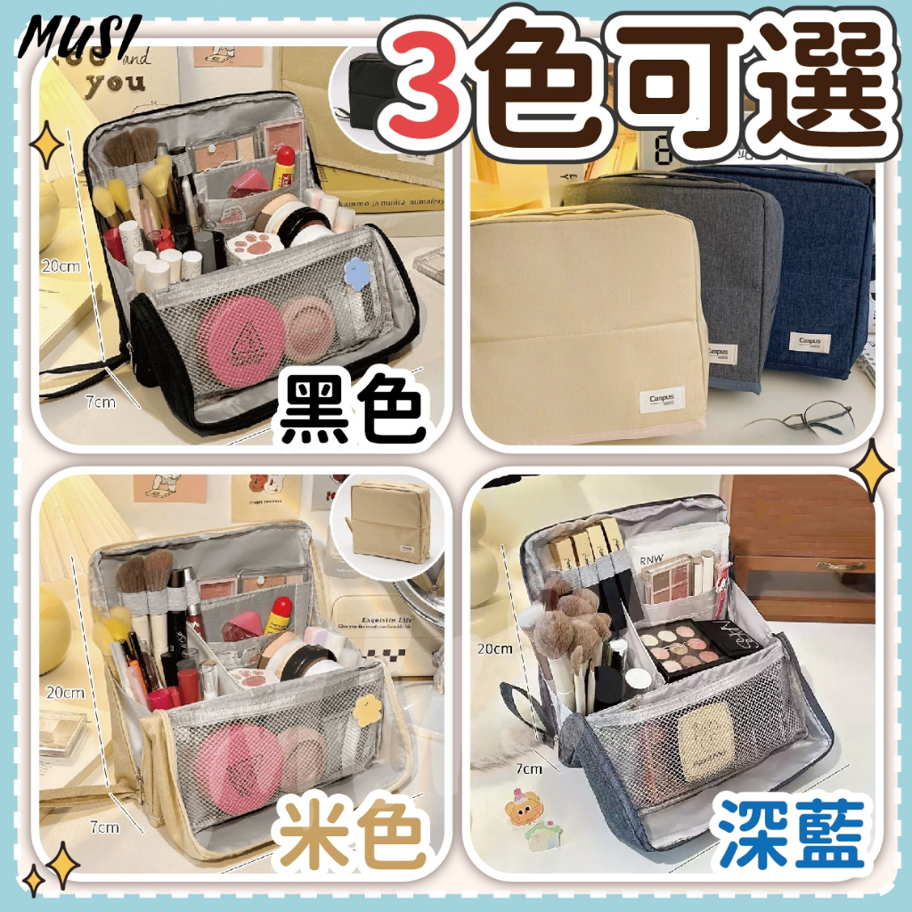 [可站立 化妝更方便]分層化妝包 化妝包 刷具包 黑色米色深藍色 旅行化妝包 手提化妝包 收納包超大容量可站立化妝包-深藍 現貨隔天發|超大容量可站立化妝包-黑色 現貨隔天發|超大容量可站立化妝包-米色 現貨隔天發|底部微開線(下單謹慎 售後不退貨) 藍|前後微污漬(下單謹慎 售後不退貨) 米Makeup AccessoriesMUSI 口罩&包包帽子 專賣