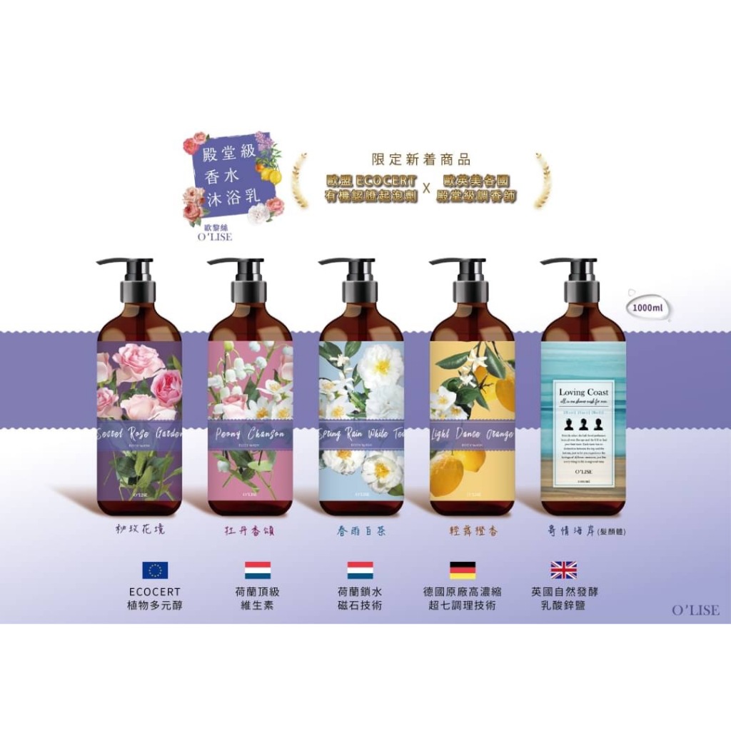 【O’LISE 歐黎絲】殿堂級香水沐浴乳1000ml【2入】牡丹香頌|【2入】春雨白茶|【2入】秘玫花境|【2入】輕舞橙香|【4入】牡丹香頌|【4入】春雨白茶|【4入】秘玫花境|【4入】輕舞橙香Body Wash & SoapO’LISE 歐黎絲
