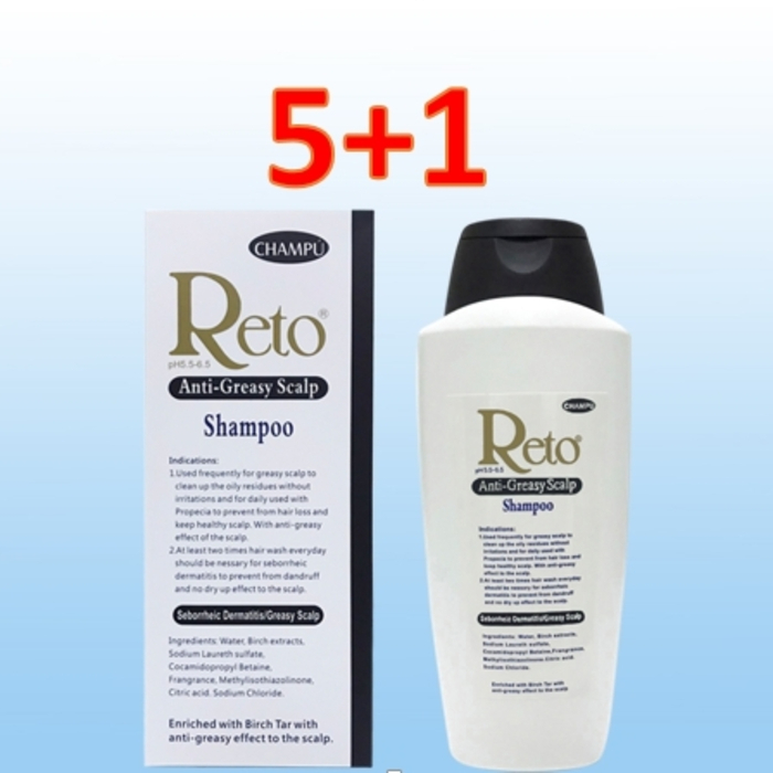 【Reto】深層抗油性頭皮/髮洗髮精 (含Birch tar)黑盒裝 750 ml.5+1瓶【Reto】深層抗油性頭皮/髮洗髮精 (含Birch tar)黑盒裝 750 ml.5+1瓶ShampooReto阿伊媞歐 敏弱肌膚專家