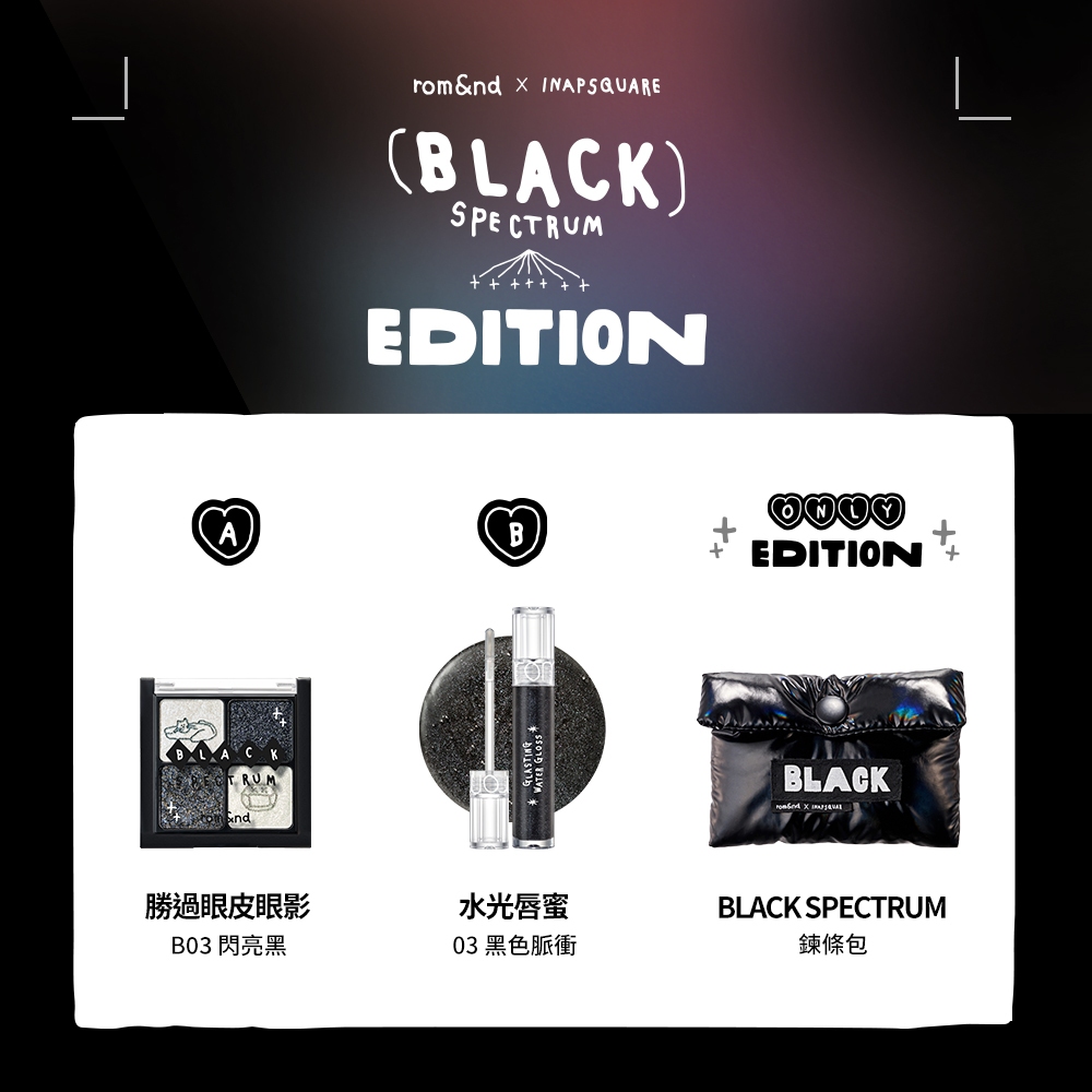 【即期品】rom&nd X INAPSQUARE BLACK SPECTRUM EDITION限定套盒【即期品】rom&nd X INAPSQUARE BLACK SPECTRUM EDITION限定套盒rom&nd|nuse 官方旗艦店