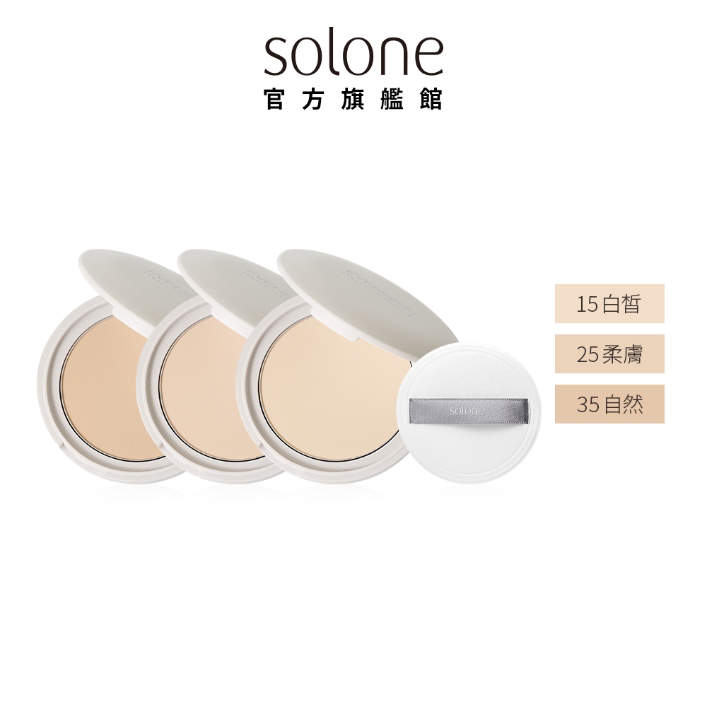 Solone 雪紗柔霧嫩粉餅 7.8g (SPF50★★★★/附粉撲/含鏡面)【官方旗艦館】15白皙 Light|25柔膚 Ivory|35自然 Nude|15白皙+25柔膚+35自然(包色組)FaceSolone 官方旗艦館