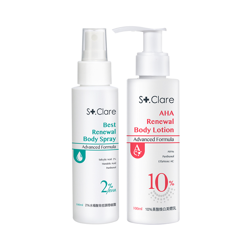 St.Clare聖克萊爾 10%果酸煥白美體乳100ml+2%水楊酸背痘調理噴霧100ml果酸乳+水楊酸乳+水楊酸背痘噴霧|果酸乳+水楊酸背痘噴霧Body Cream, Lotion & ButterSt.Clare聖克萊爾 官方旗艦店