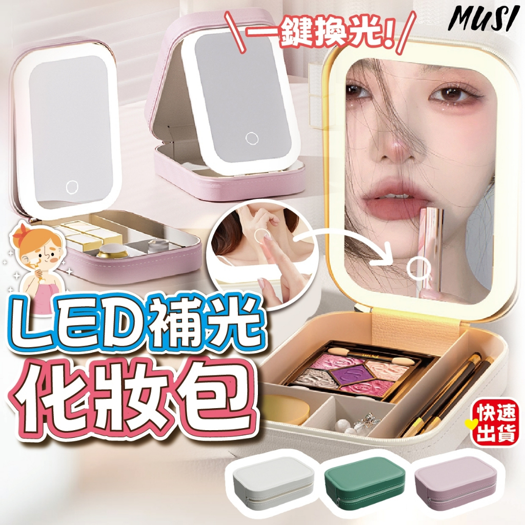 [隔天發貨]化妝鏡 鏡子 隨身鏡 led鏡子三色光源 是鏡子也是化妝包 鏡子化妝鏡 化妝包 隨身化妝包 led鏡子LED補光化妝包-果綠色|LED補光化妝包-櫻花粉|LED補光化妝包-奶油白Makeup AccessoriesMUSI 口罩&包包帽子 專賣