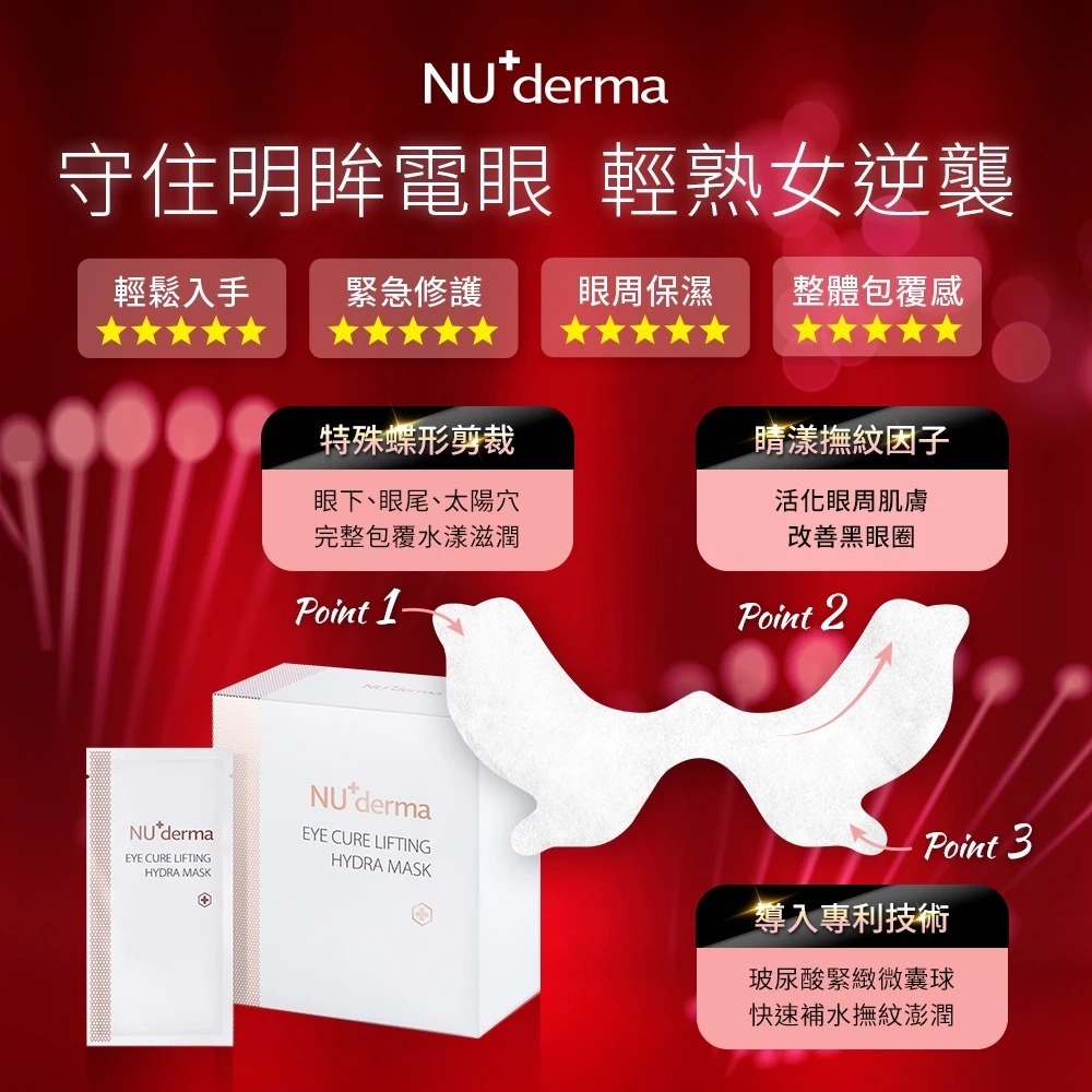 ★8/25前獨家★送5片抗老導膜(價值1500)|淡化細紋/亮白緊緻【NU+derma】明眸撫紋水嫩眼膜 (50入)★8/25前獨家★送5片抗老導膜(價值1500)|淡化細紋/亮白緊緻【NU+derma】明眸撫紋水嫩眼膜 (50入)Eye TreatmentNU+derma 新德曼 官方旗艦店