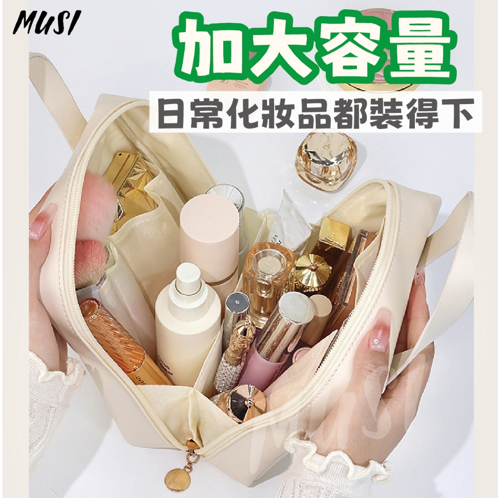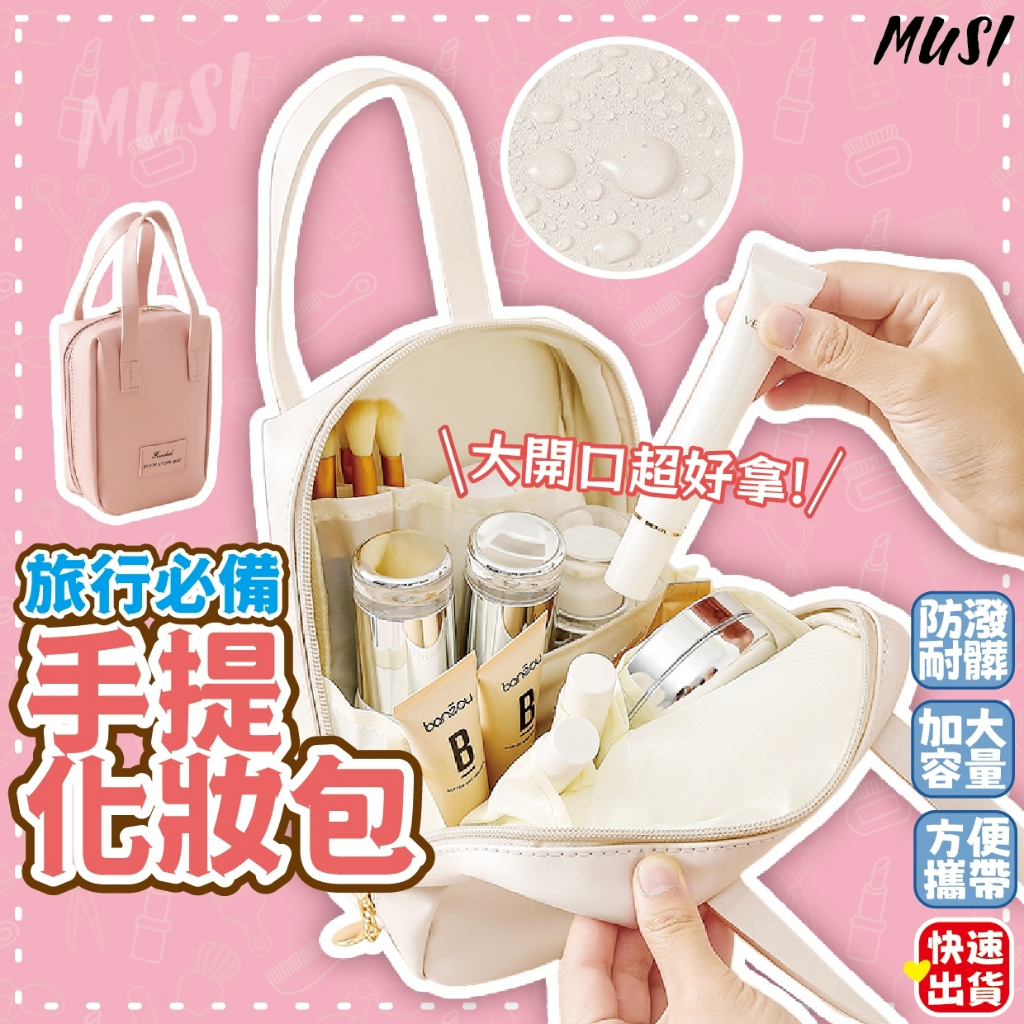 [台灣快發]手提化妝包 化妝包 收納包 美妝收納包 手提化妝包 大開口 美妝用品 出遊必備 旅行收納包手提化妝包 天使白 現貨隔天發|手提化妝包 玫瑰粉 現貨隔天發Makeup AccessoriesMUSI 口罩&包包帽子 專賣