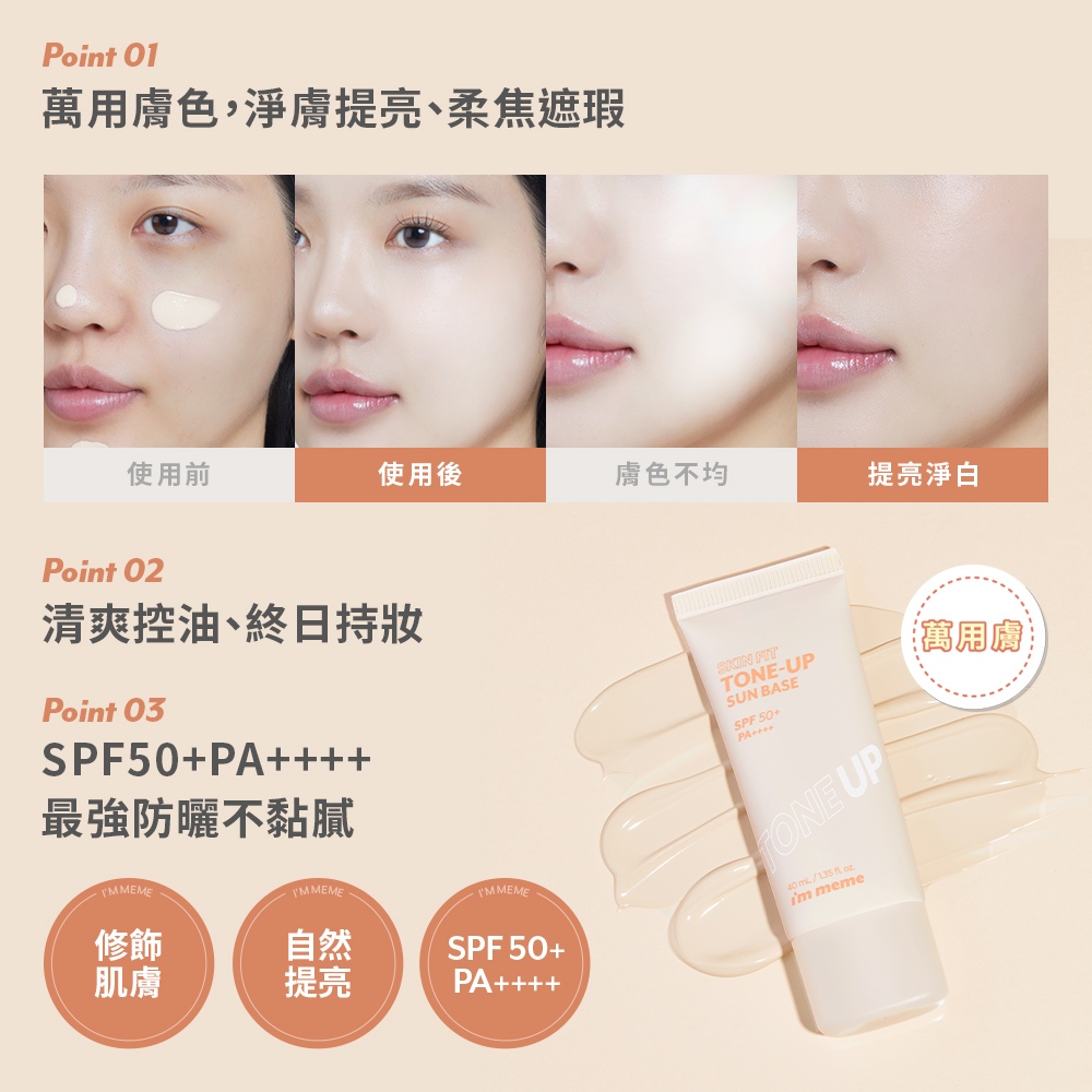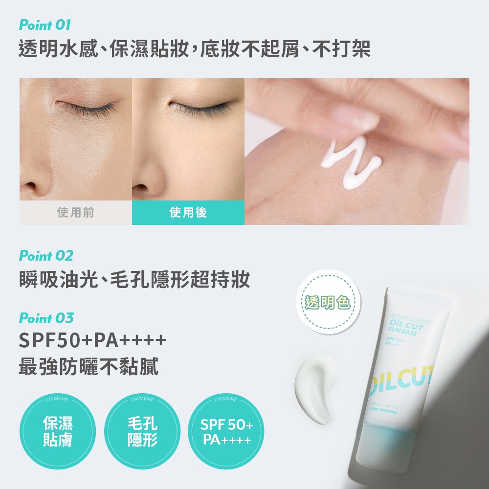 【I’M MEME】我愛水凝光透/修膚/控油/好氣色妝前防護乳(SPF50+PA++++)40ml修膚妝前|控油妝前|好氣色妝前|光透妝前FacePONY EFFECT|I’M MEME 官方旗艦館