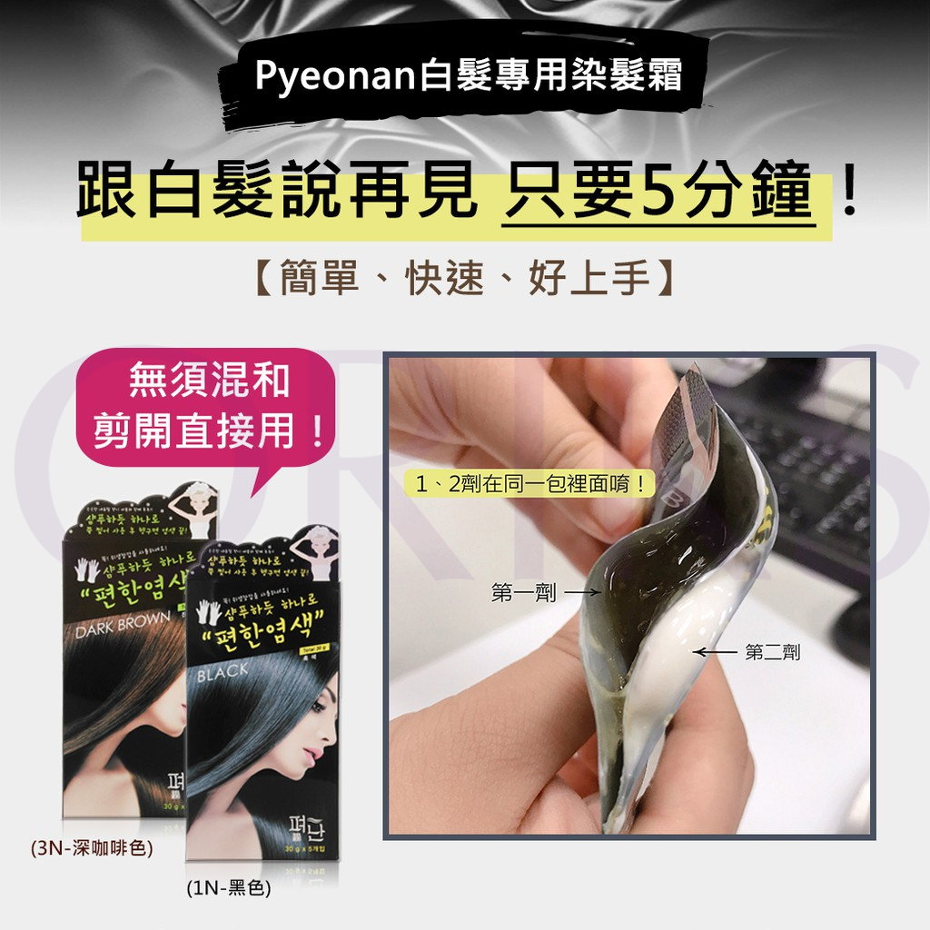 [ORIKS]【大組】韓國原裝Pyeonan 白髮專用5分鐘高效便捷染髮霜 5入/盒深咖啡10盒Hair ColourORIKS 官方旗艦店