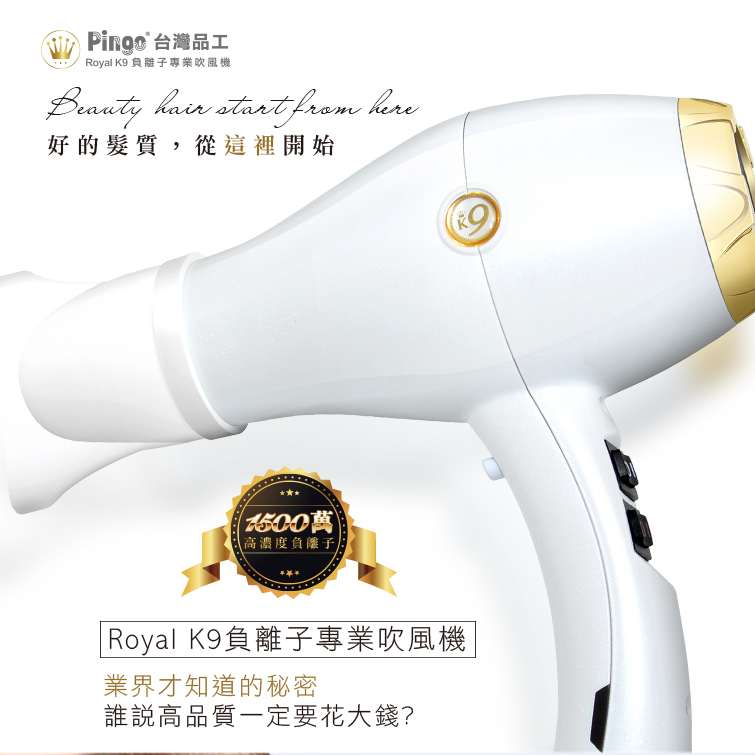 【Pingo台灣品工】 Royal K9 負離子專業吹風機|官方旗艦店白色Hair ToolsPingo台灣品工|官方旗艦店