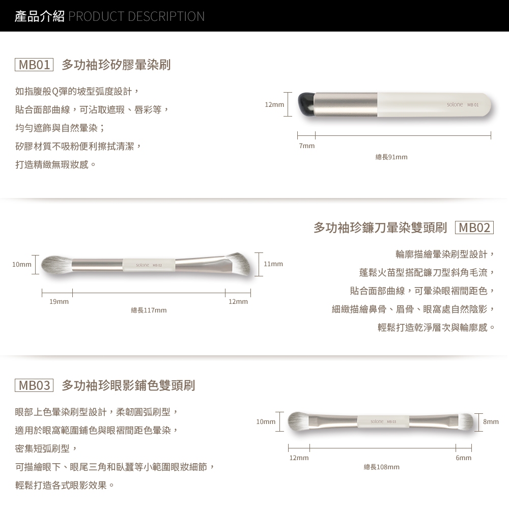Solone 多功袖珍刷具系列 全套6件組【官方旗艦館】全套6件組+贈收納袋|全套6件組Makeup AccessoriesSolone 官方旗艦館