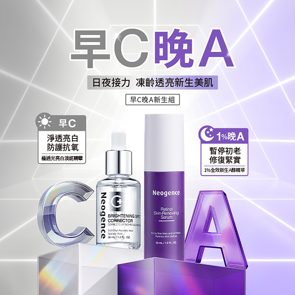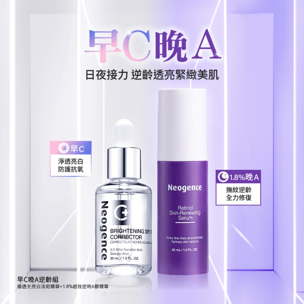 霓淨思 早C晚A緊實發光組(1%新生A醇30ml+新版淡斑精華30ml) 官方旗艦店1%新生A醇30ml+淡斑精華30mlFacial Serum & EssenceNeogence霓淨思官方旗艦店