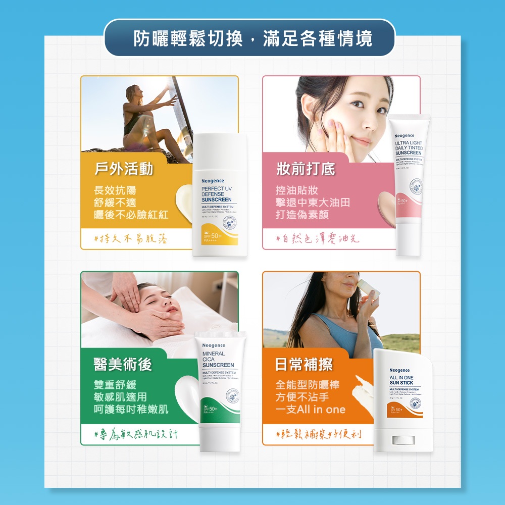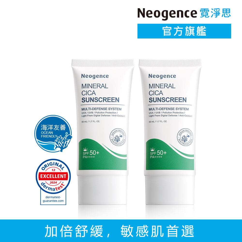 霓淨思 全新升級★水感/全天候/亮顏防曬乳 任選2入組 官方旗艦店水感保濕50ml*2入|亮顏隔離乳30ml*2入|全天候抗陽50ml*2入|清爽防曬棒30g*2入|積雪草純物理防曬乳50ml*2入Face SunscreenNeogence霓淨思官方旗艦店