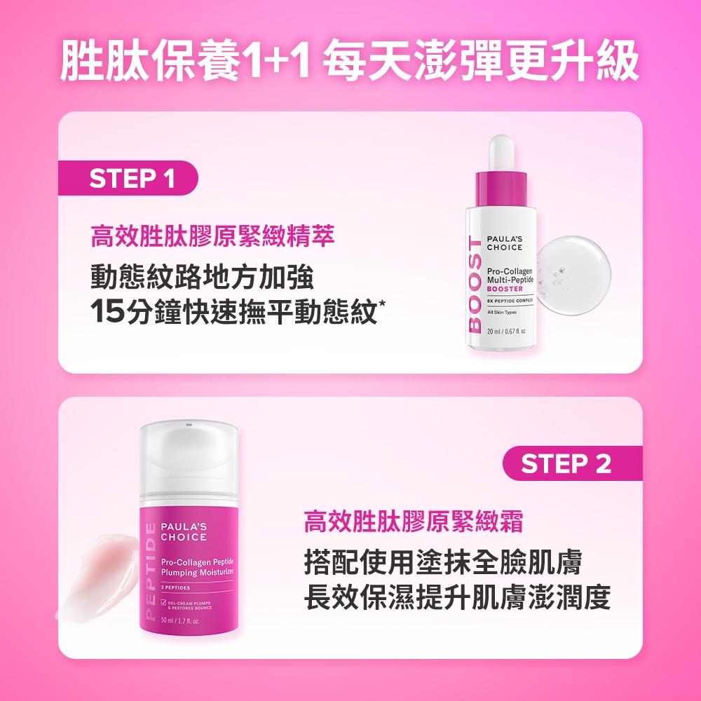 寶拉珍選 高效胜肽膠原緊緻精萃+高效胜肽膠原緊緻霜規格- 加贈 2%水楊酸精華液30ml|規格-正貨|規格- 加贈 0.1%A醇修護精露5mlFacial MoisturizerPaula’s Choice 寶拉珍選 官方旗艦店