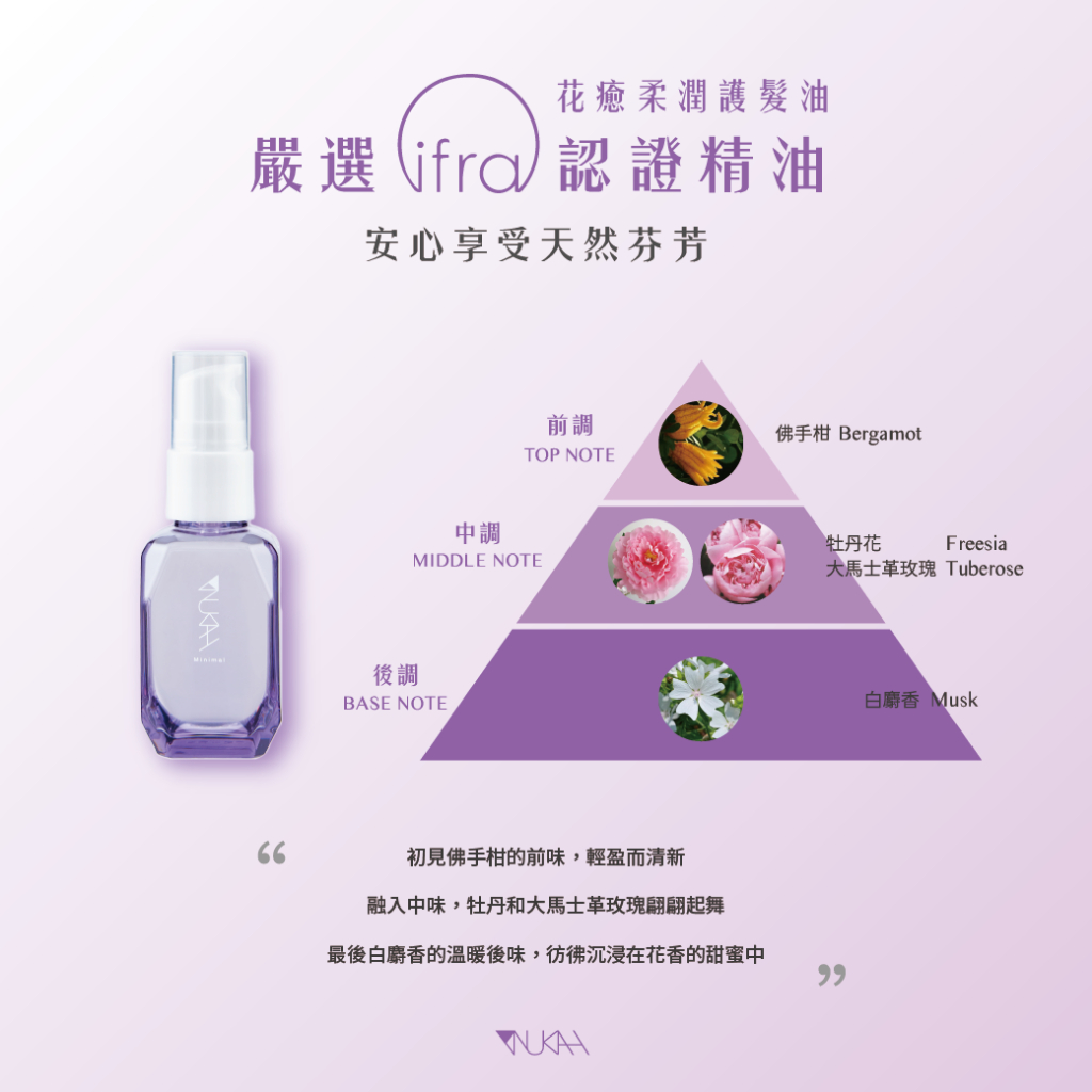 【Nukah鹿卡】花癒柔潤護髮油 30ml 新品上市 新香調 免沖洗 沙龍級護髮油 洗髮精禮盒 柔順髮絲 染燙受損適用【Nukah鹿卡】花癒柔潤護髮油 30ml 新品上市 新香調 免沖洗 沙龍級護髮油 洗髮精禮盒 柔順髮絲 染燙受損適用Hair TreatmentNukah | 鹿卡專業髮品