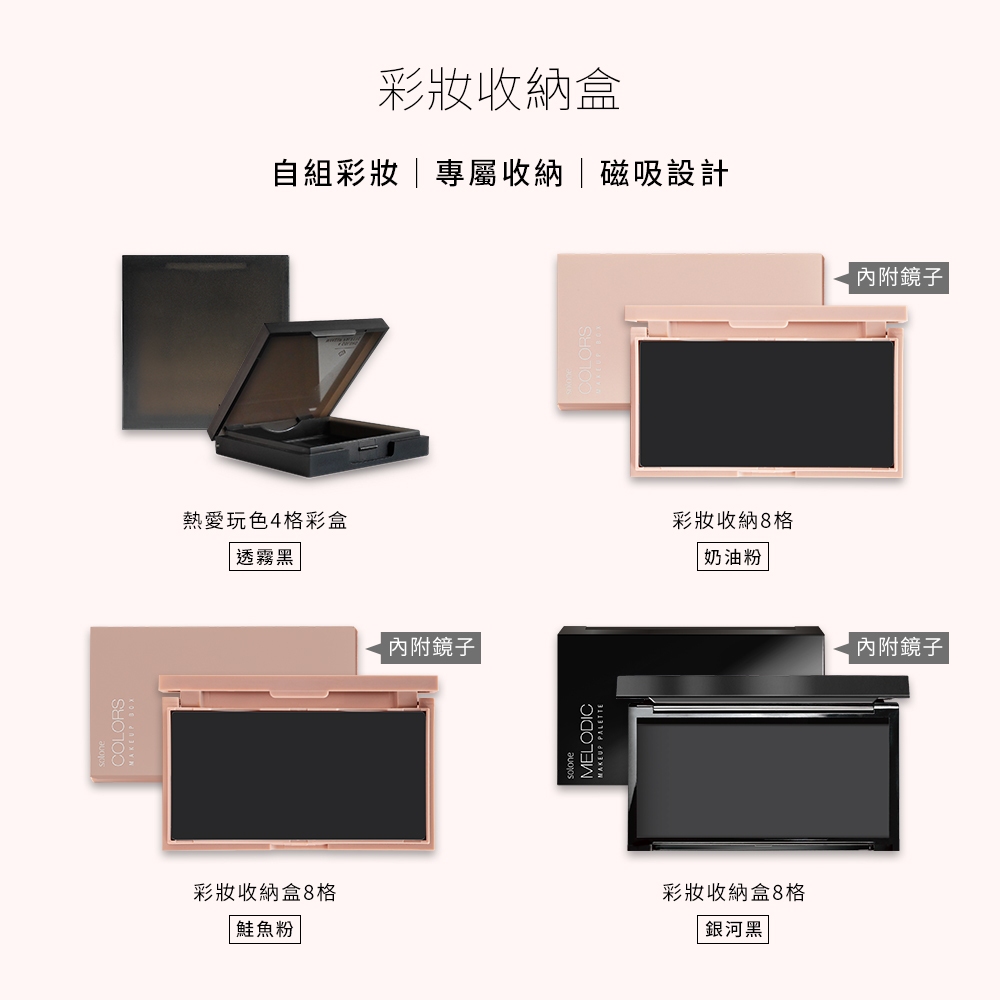 Solone 彩妝收納盒 (多款可選/4格/8格/自組彩妝)【官方旗艦館】熱愛玩色透霧黑(4格 )無化妝鏡|奶油粉(8格)附化妝鏡|銀河黑(8格)附化妝鏡|鮭魚粉(8格)附化妝鏡OthersSolone 官方旗艦館