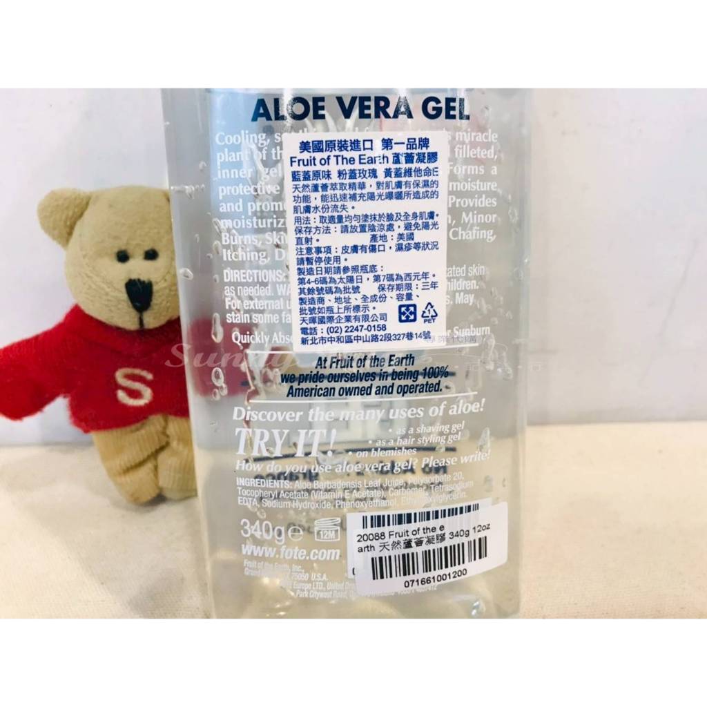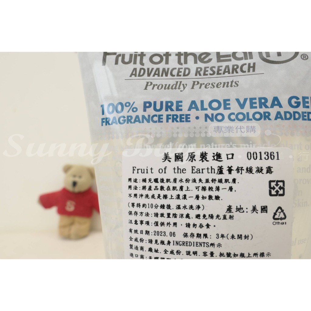 美國 Fruit of the earth Aloe vera 天然蘆薈凝膠 凝露 曬傷舒緩【Suny Buy】340g 12oz|170g 6oz|680g 24oz|567g 20ozFacial MoisturizerSunny Buy 孫記洋行 官方商城