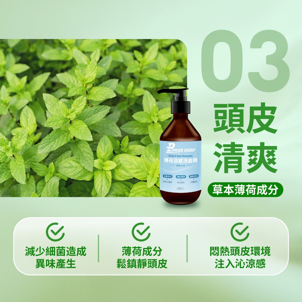 【PowerHero】薄荷涼感洗髮精 1/2/4入組 500ml/瓶《薄荷涼感、舒緩放鬆》1入|2入|4入ShampooPowerHero 官方旗艦館
