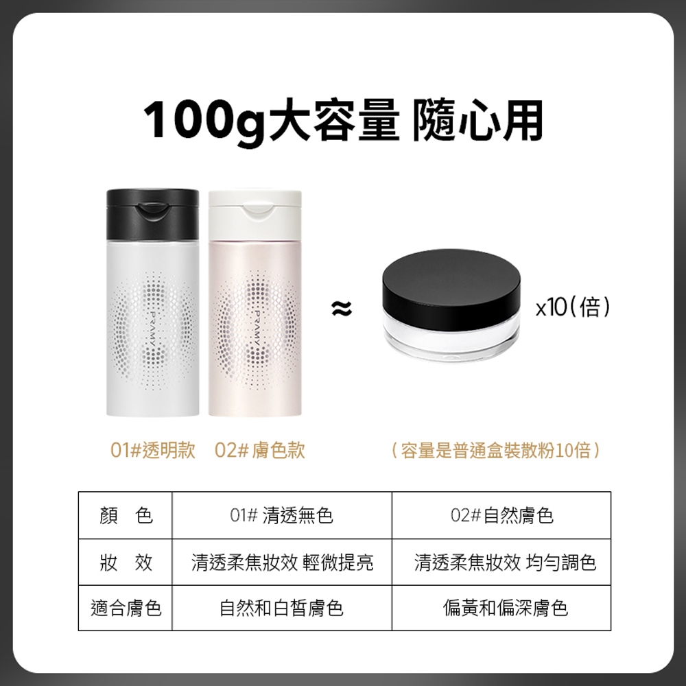 【台灣總代理】柏瑞美pramy 清透無瑕絲柔蜜粉 100g | 透白色 (自然白晰透亮) | 淺膚色 (膚色健康均勻)01透白色 (自然白晰)|02淺膚色(膚色健康)FacePRAMY 柏瑞美台灣官方旗艦店