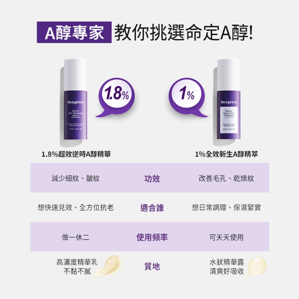 霓淨思 1.8%超效逆時A醇精華30ml 2入 官方旗艦店1.8%逆時A醇精華30ml 2入Facial Serum & EssenceNeogence霓淨思官方旗艦店
