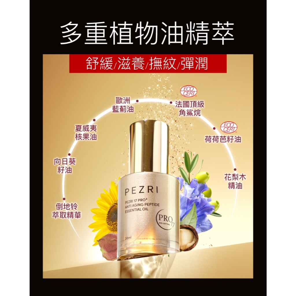 【PEZRI派翠】17胜肽PRO角鯊潤澤全能油30ml|PEZRI派翠胜肽保養專家17胜肽PRO角鯊油30ml,pro角鯊油2ml*3入效期2027.8|17胜肽PRO角鯊油30ml,17緊緻棒6.5g【盒損:2026.7|17胜肽PRO角鯊油30ml,保濕棒6.5g【盒損良品:2026.4|17胜肽PRO角鯊油30ml,外泌乳液2ml*2包【效期至2028.7|17胜肽PRO角鯊油30ml,《期間限定》無贈品|17胜肽PRO角鯊油30ml,外泌體全能修復面膜/25ml*1片Facial OilPEZRI派翠官方旗艦店|胜肽保養專家
