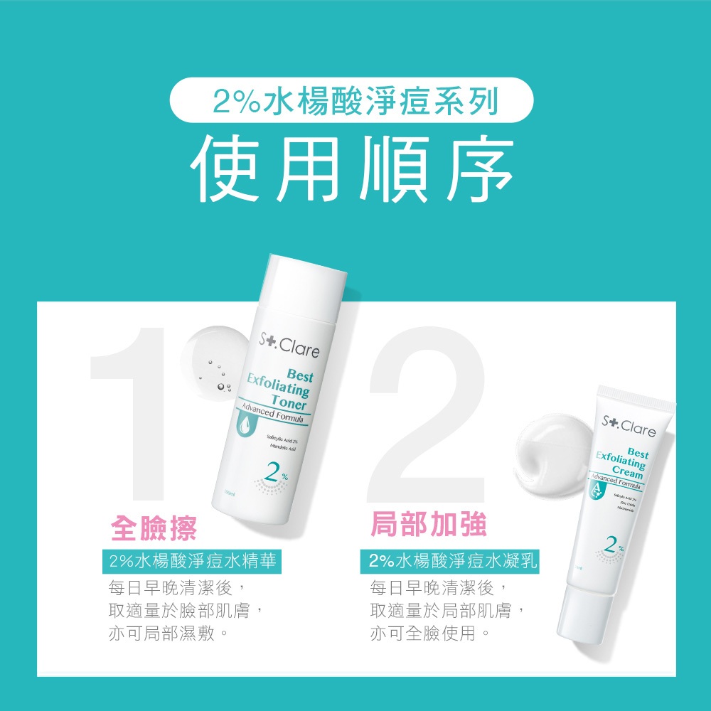 2%水楊酸淨痘水精華+2%水楊酸淨痘水凝乳+無酸抗痘調理精華2%水楊酸淨痘水精華+2%水楊酸淨痘水凝乳+無酸抗痘調理精華Facial Serum & EssenceSt.Clare聖克萊爾 官方旗艦店