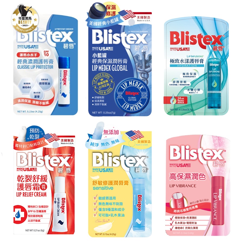 碧唇Blistex_全系列護唇膏 (高保濕潤色/小藍罐經典保濕/經典濃潤/舒敏修護/乾裂舒緩/極致水漾)