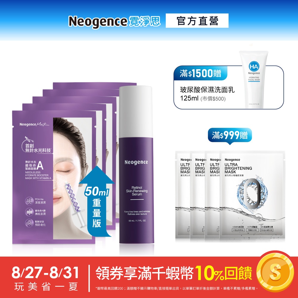 霓淨思 蝦皮獨家★1.8%超效逆時A醇精華50ml加贈組 官方旗艦店A醇精華50ml+維他命A面膜5片Facial Serum & EssenceNeogence霓淨思官方旗艦店